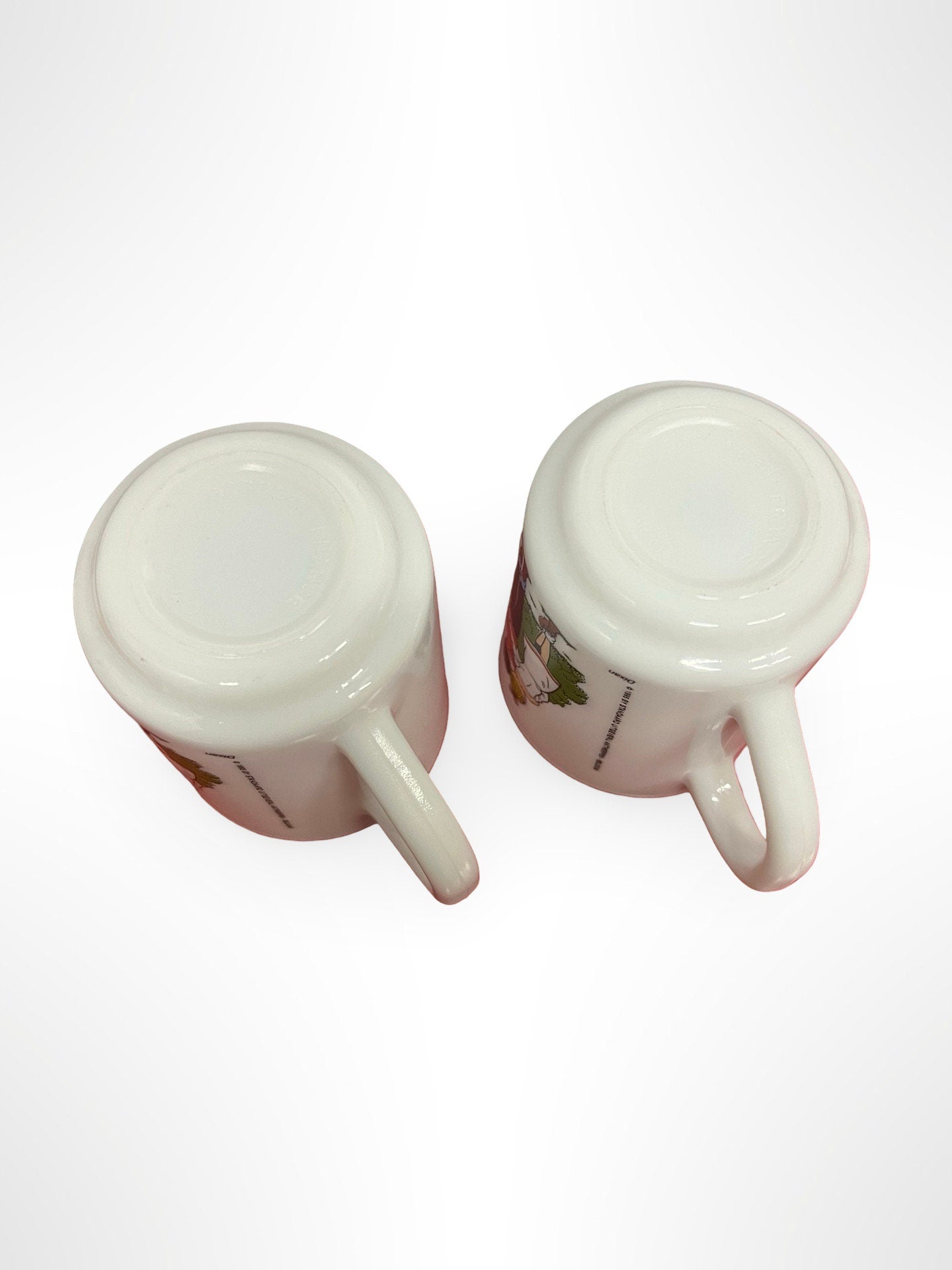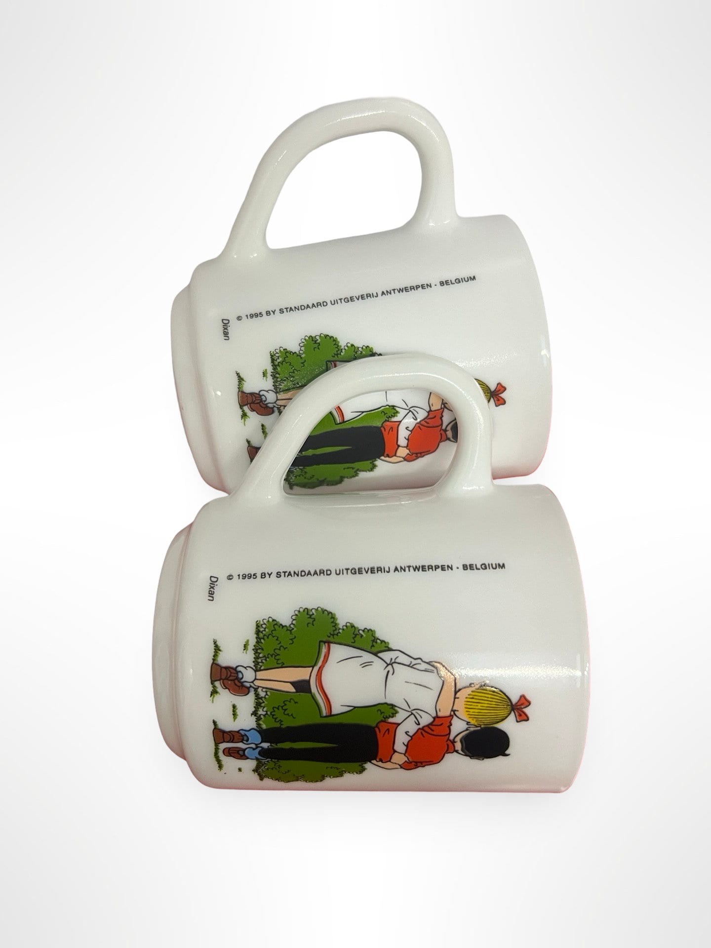 Set of 2 Vintage Suske & Wiske Mugs – Arcopal France 1995 Opal Glass