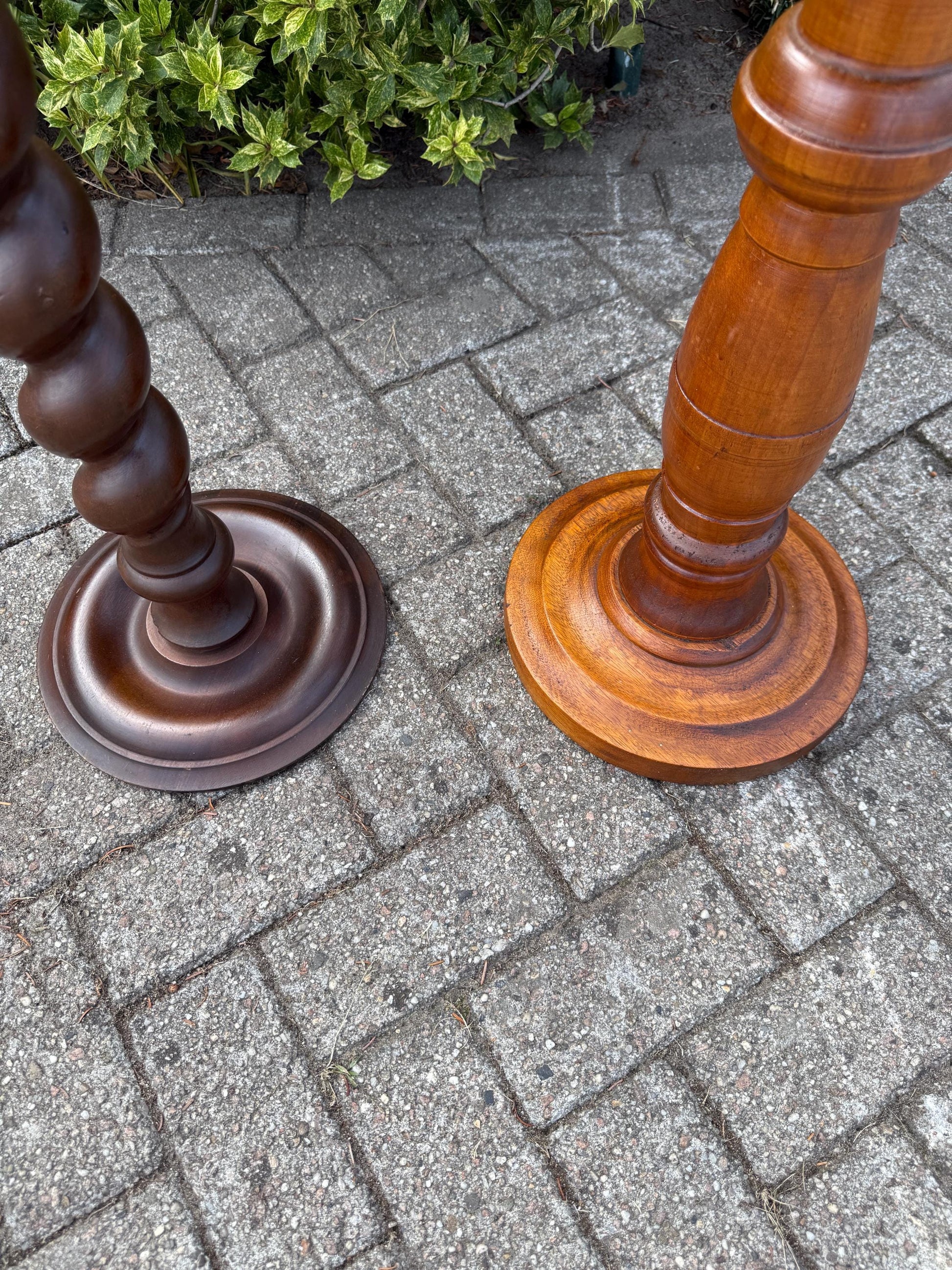 Set of two original vintage wooden plant tables in classic Dutch style.