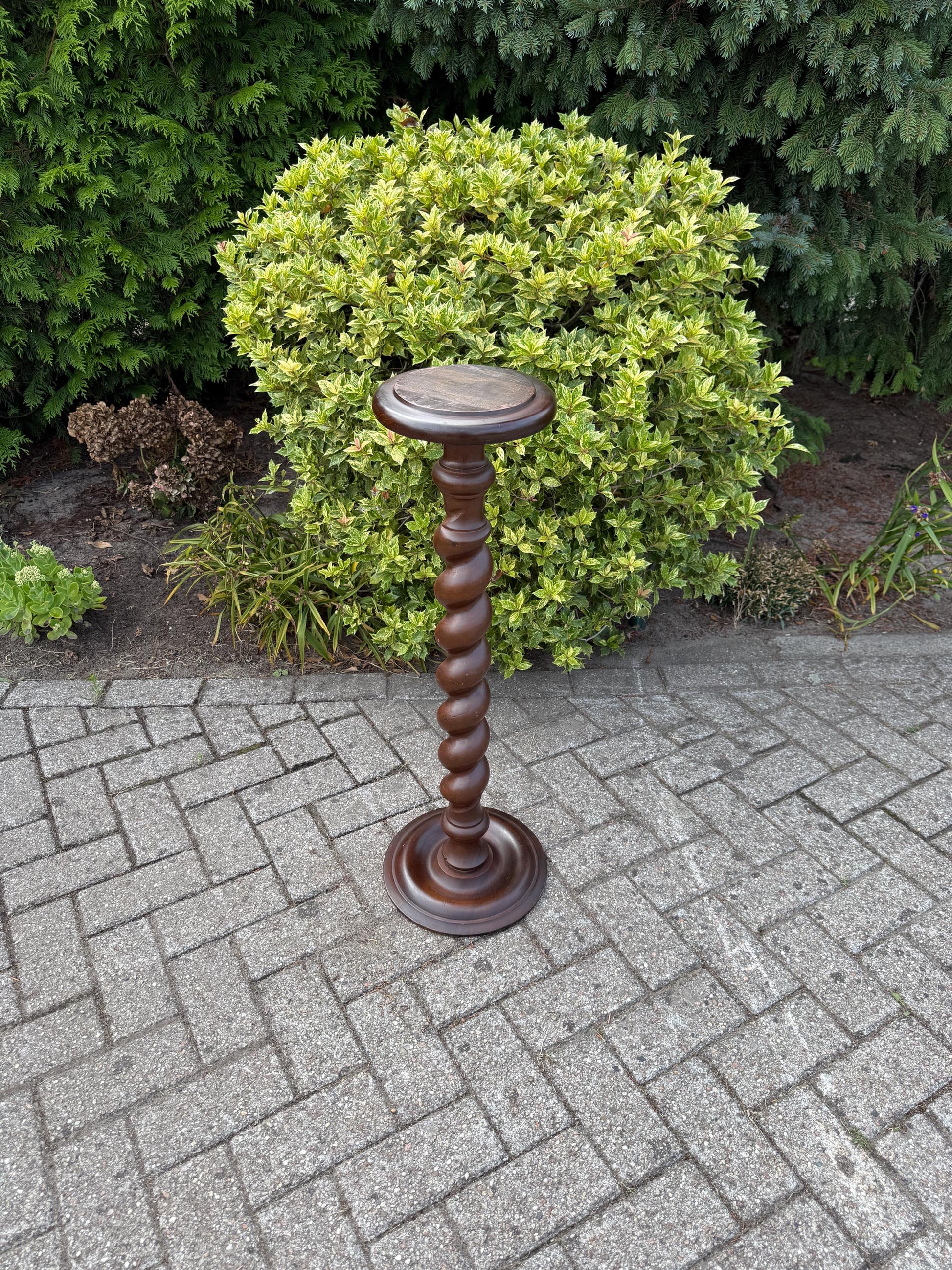 2 Vintage Wooden Plant Stands, Barley Twist And Turned Column Pedestal Tables, Solid Wood Plant Tables, Classic Dutch Design