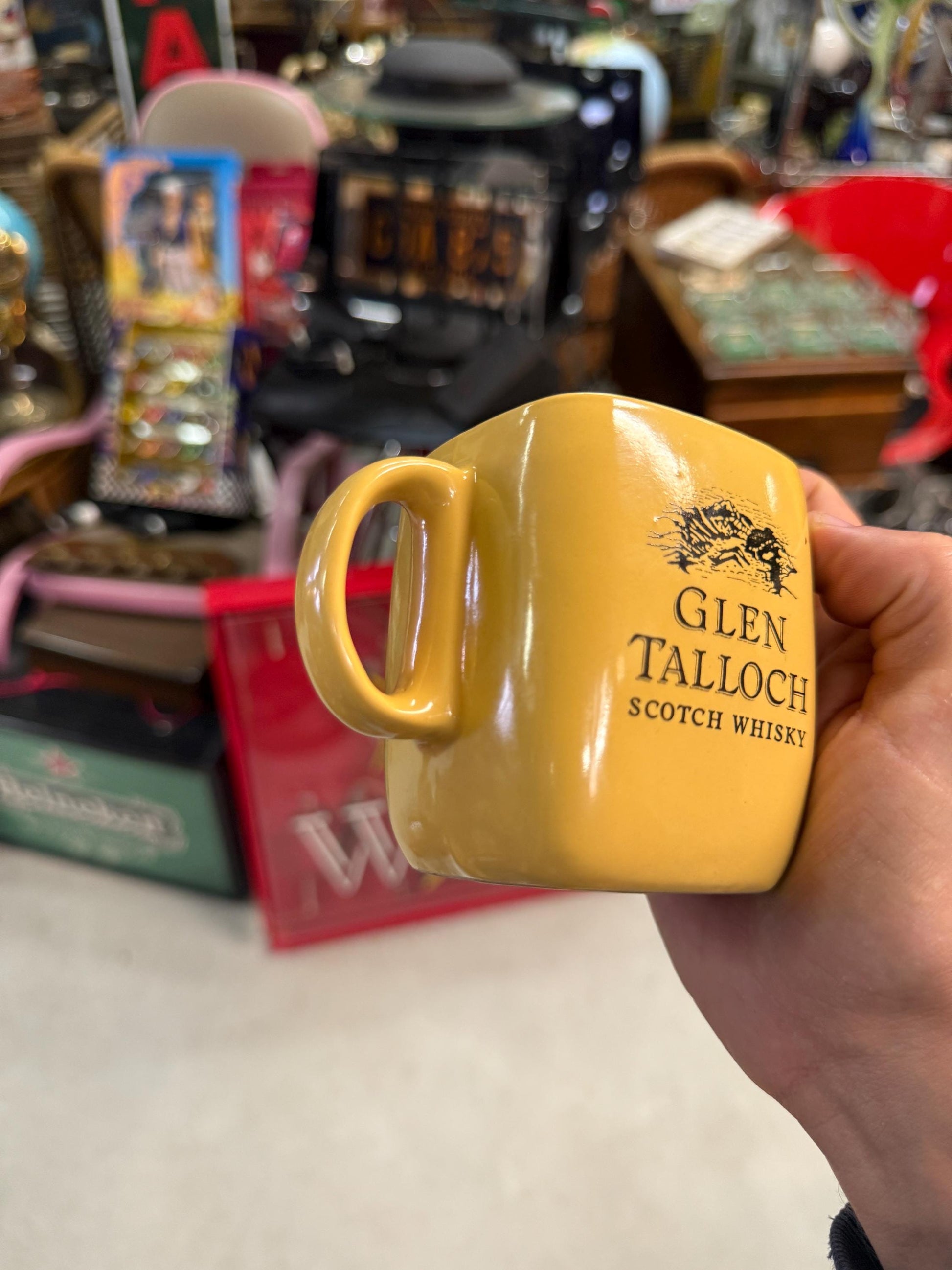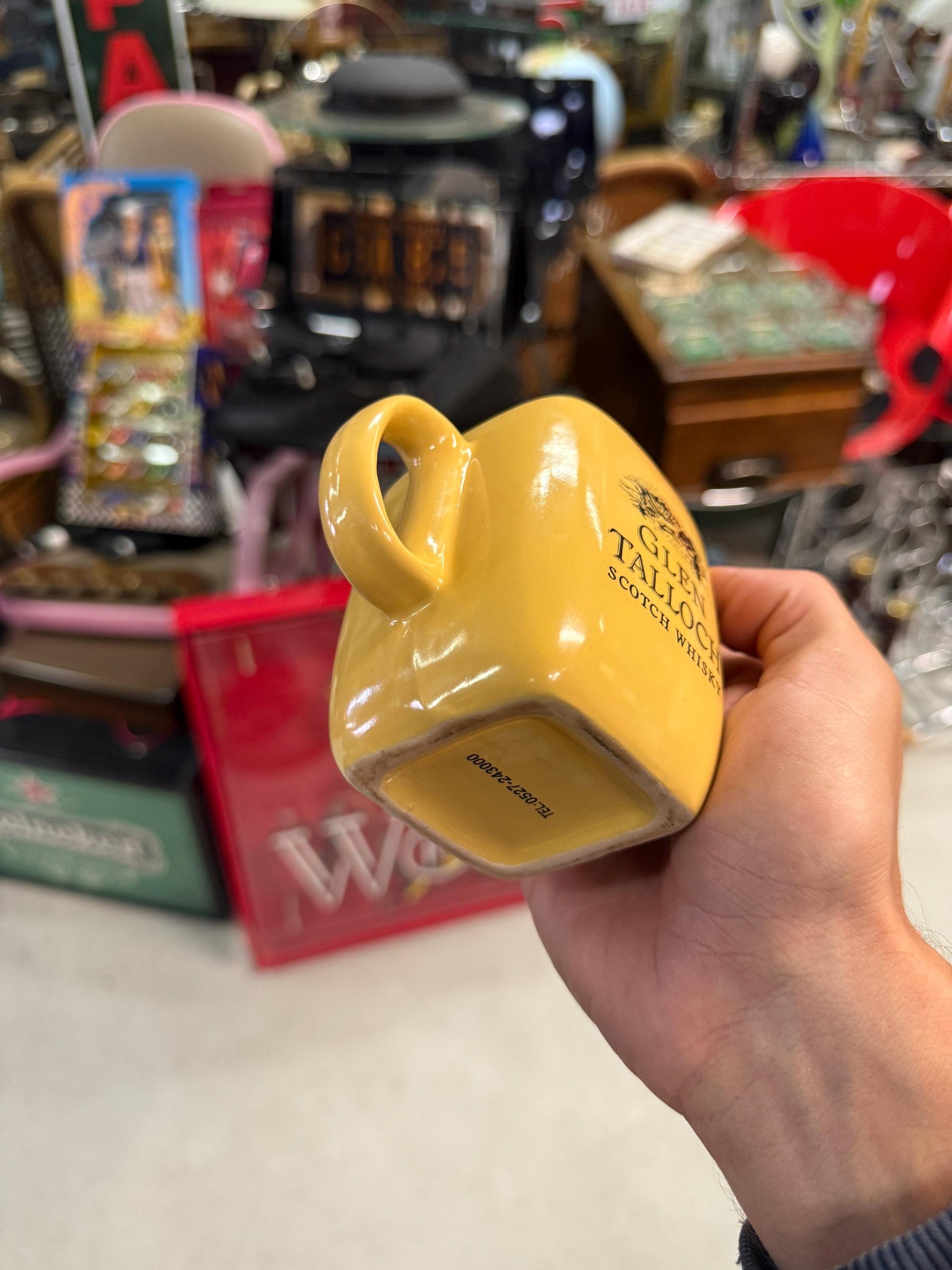 Glen Talloch whisky pitcher, small ceramic water jug, vintage barware, Scotch whisky creamer, whisky advertising jug, yellow whisky pitcher