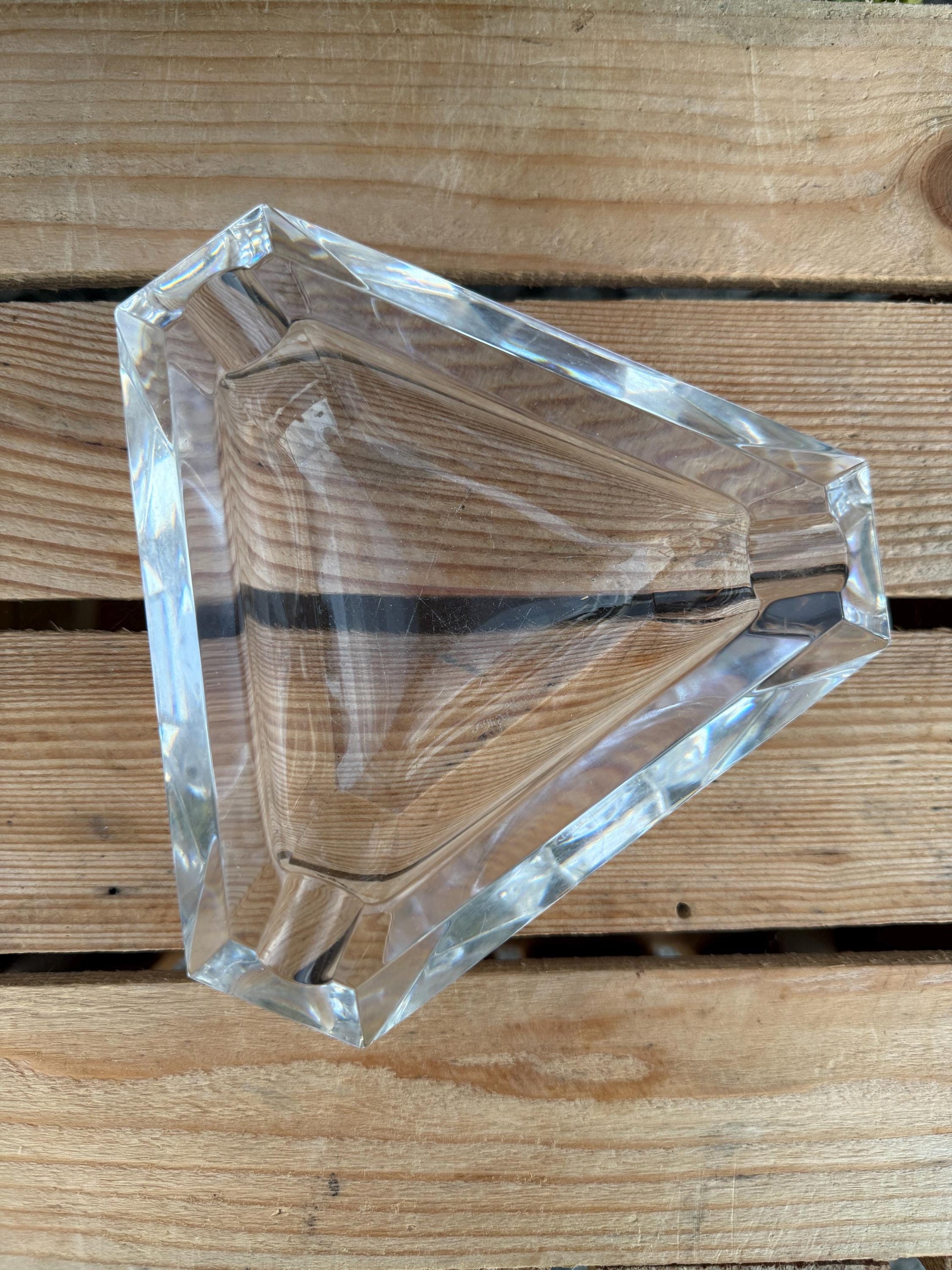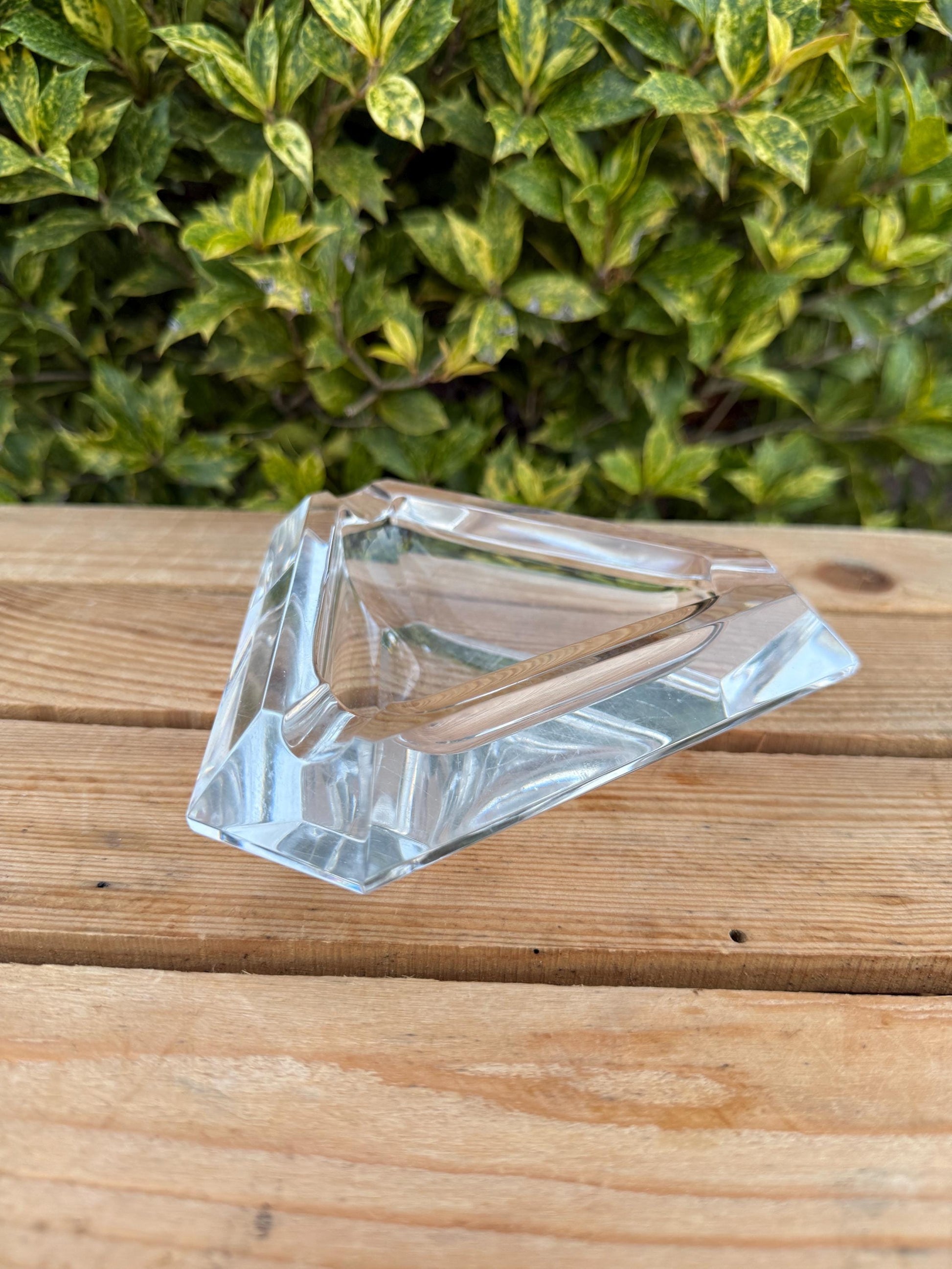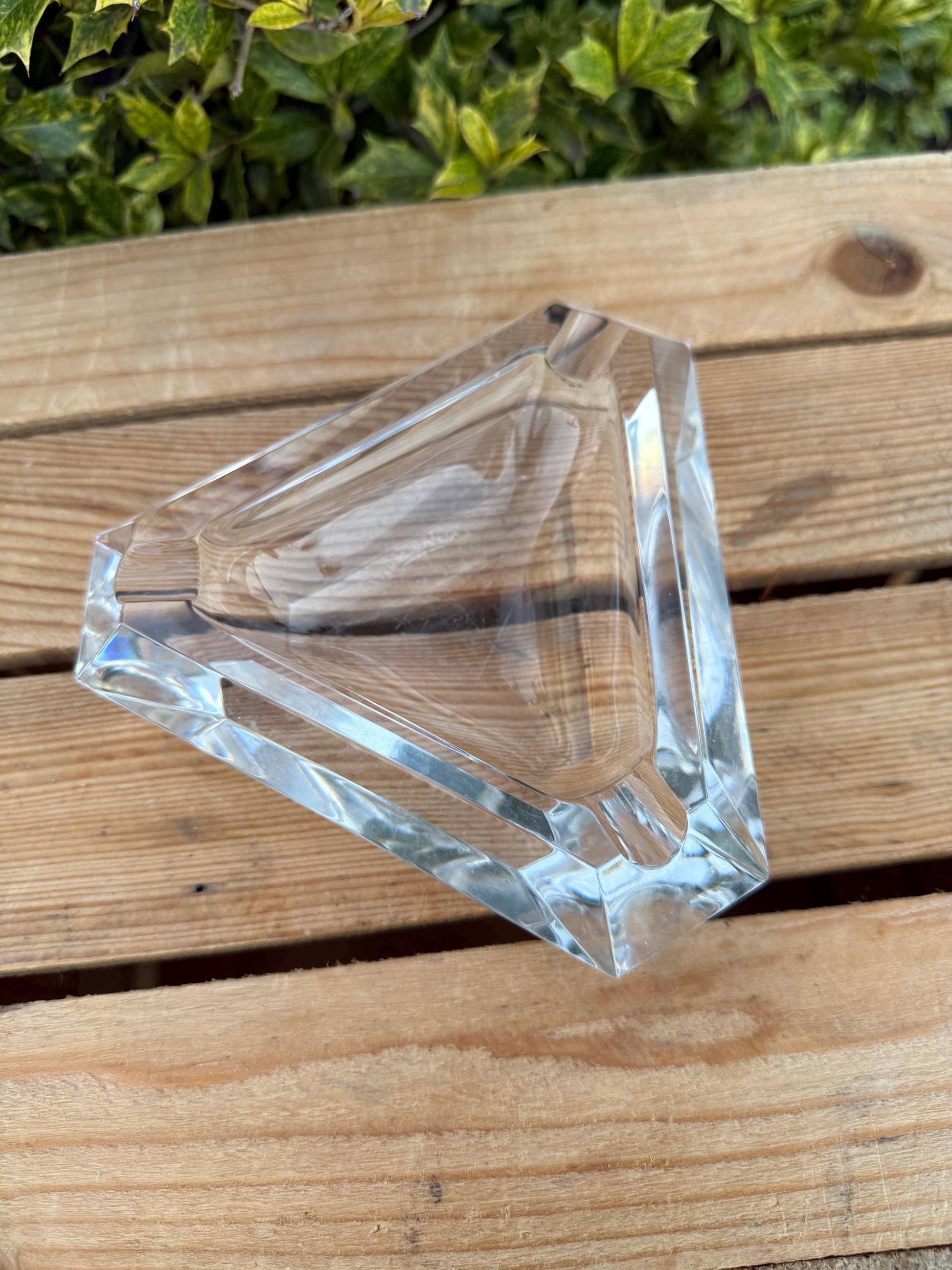 Val Saint Lambert Crystal Ashtray – Triangular Cut Glass