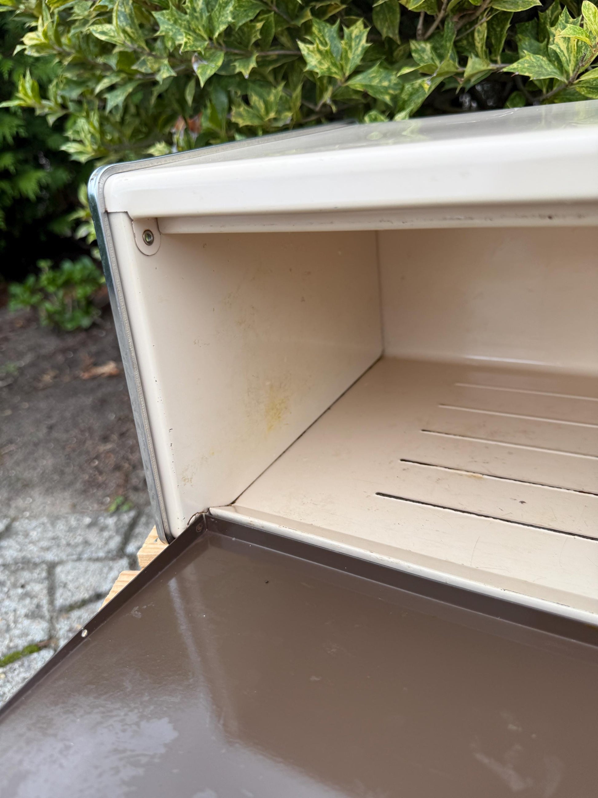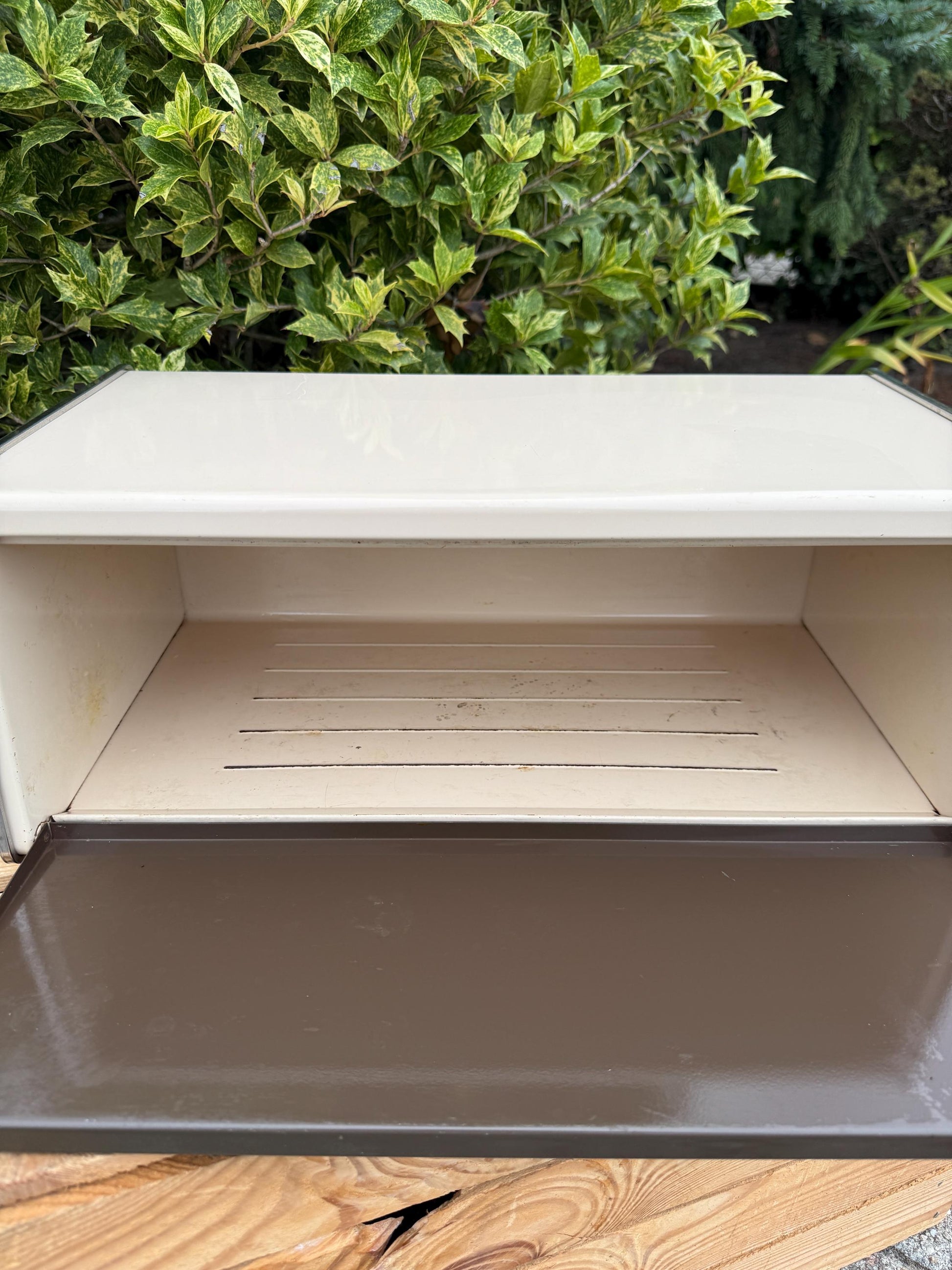Vintage Brabantia Bread Box – Brown And White Front Flap Breadbin