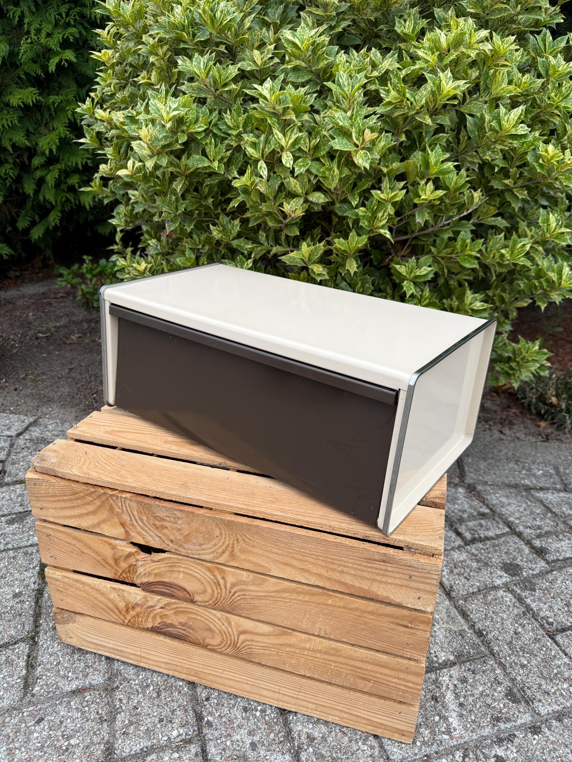 Vintage Brabantia Bread Box, Mid Century Metal Kitchen Storage, Brown And White Front Flap Breadbin, Dutch Design Food Container