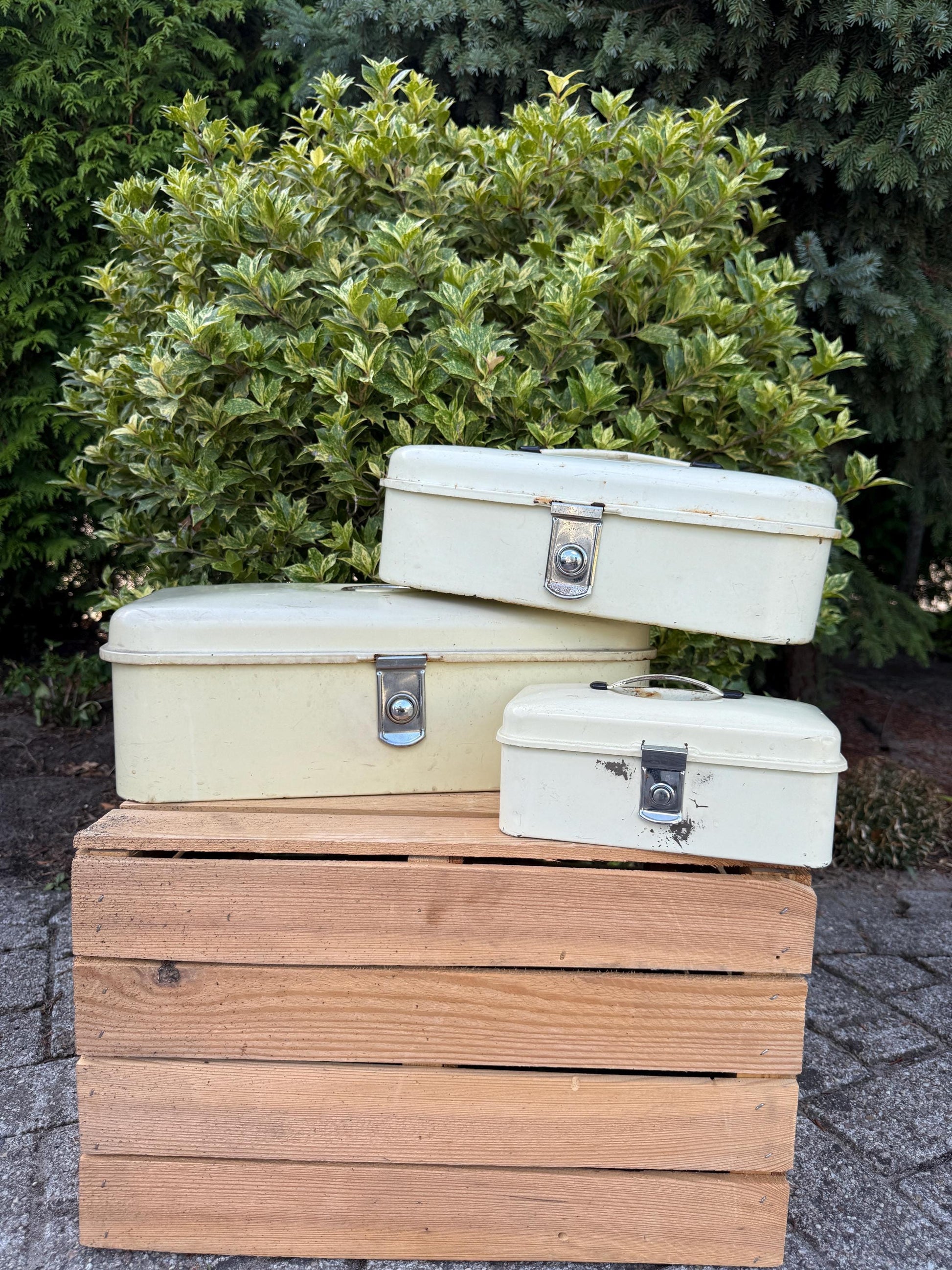 Originally used for kitchen storage, they also work perfectly as toolboxes or for industrial decor.