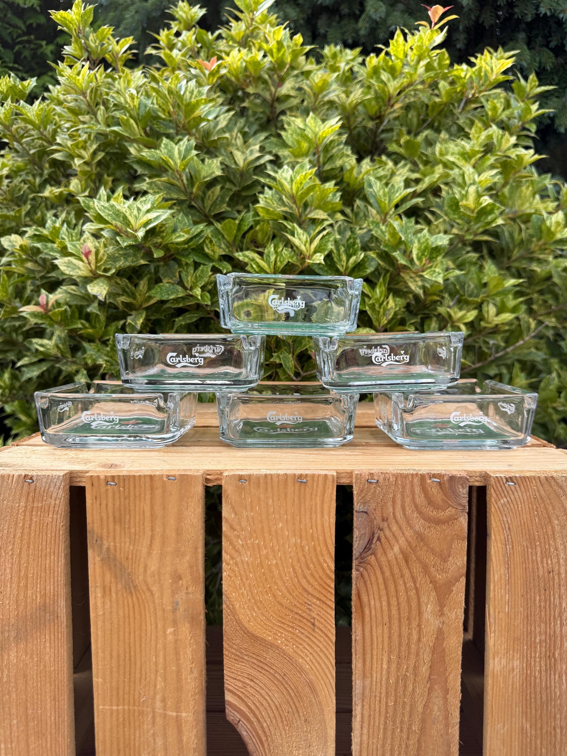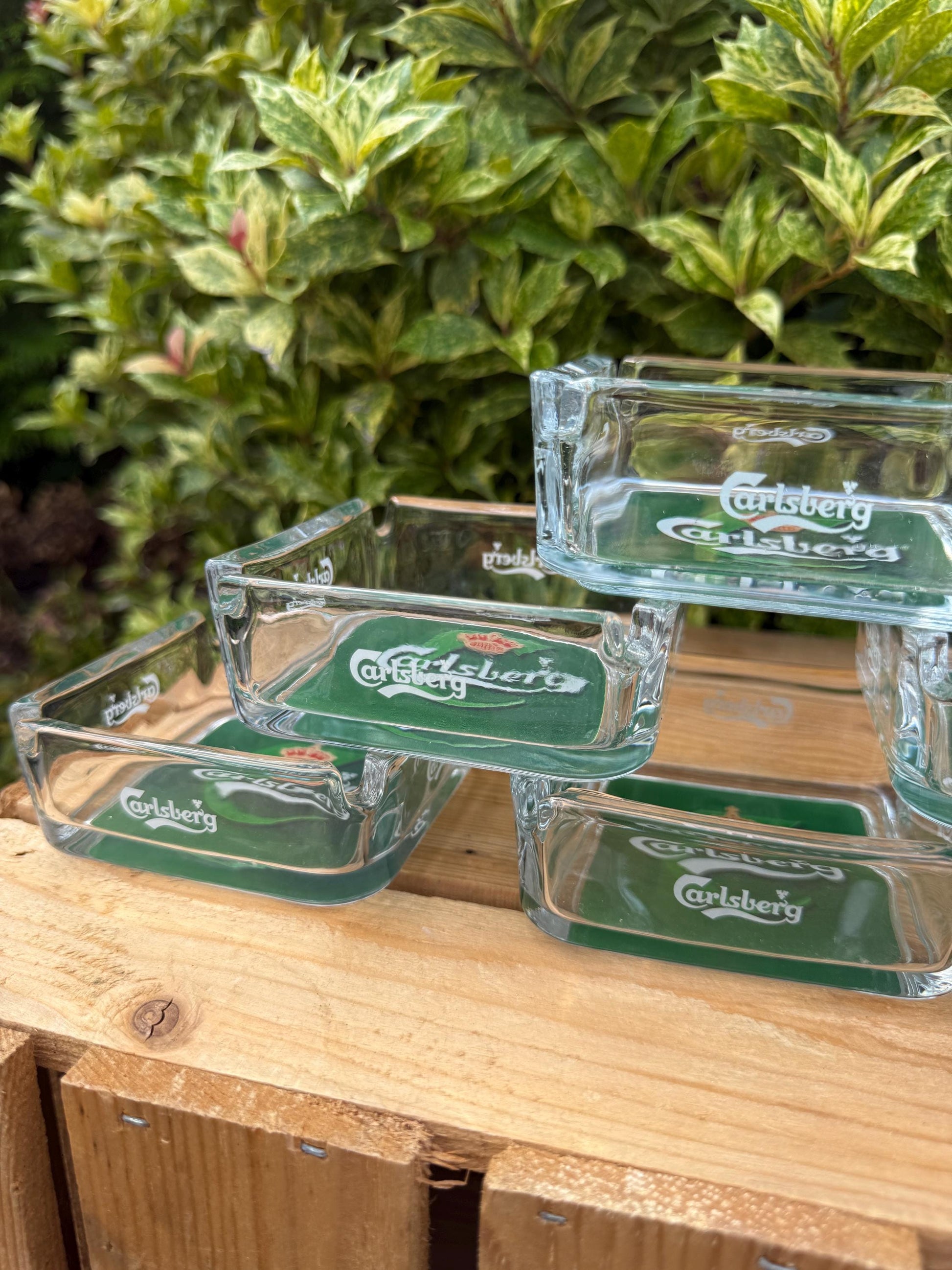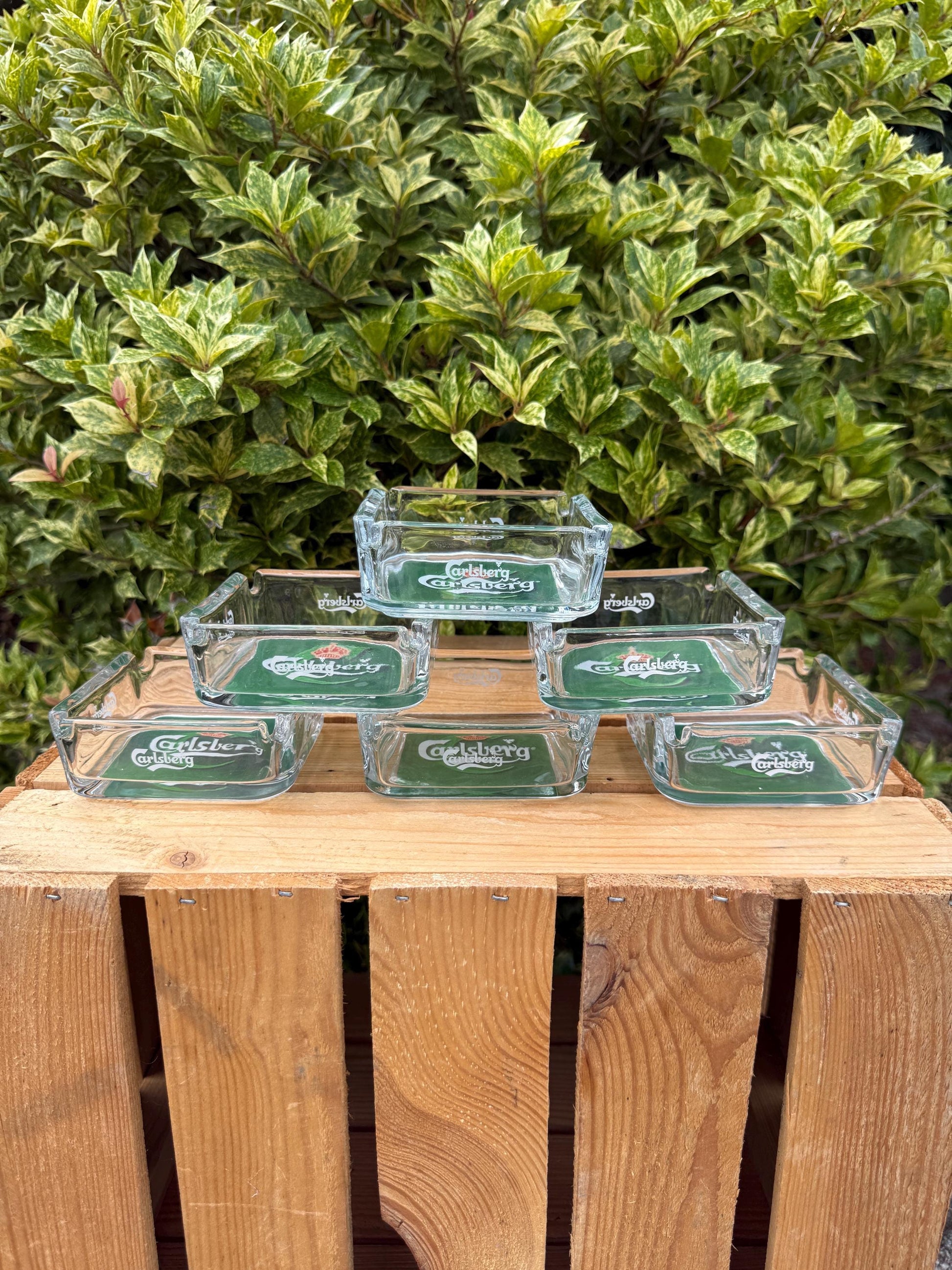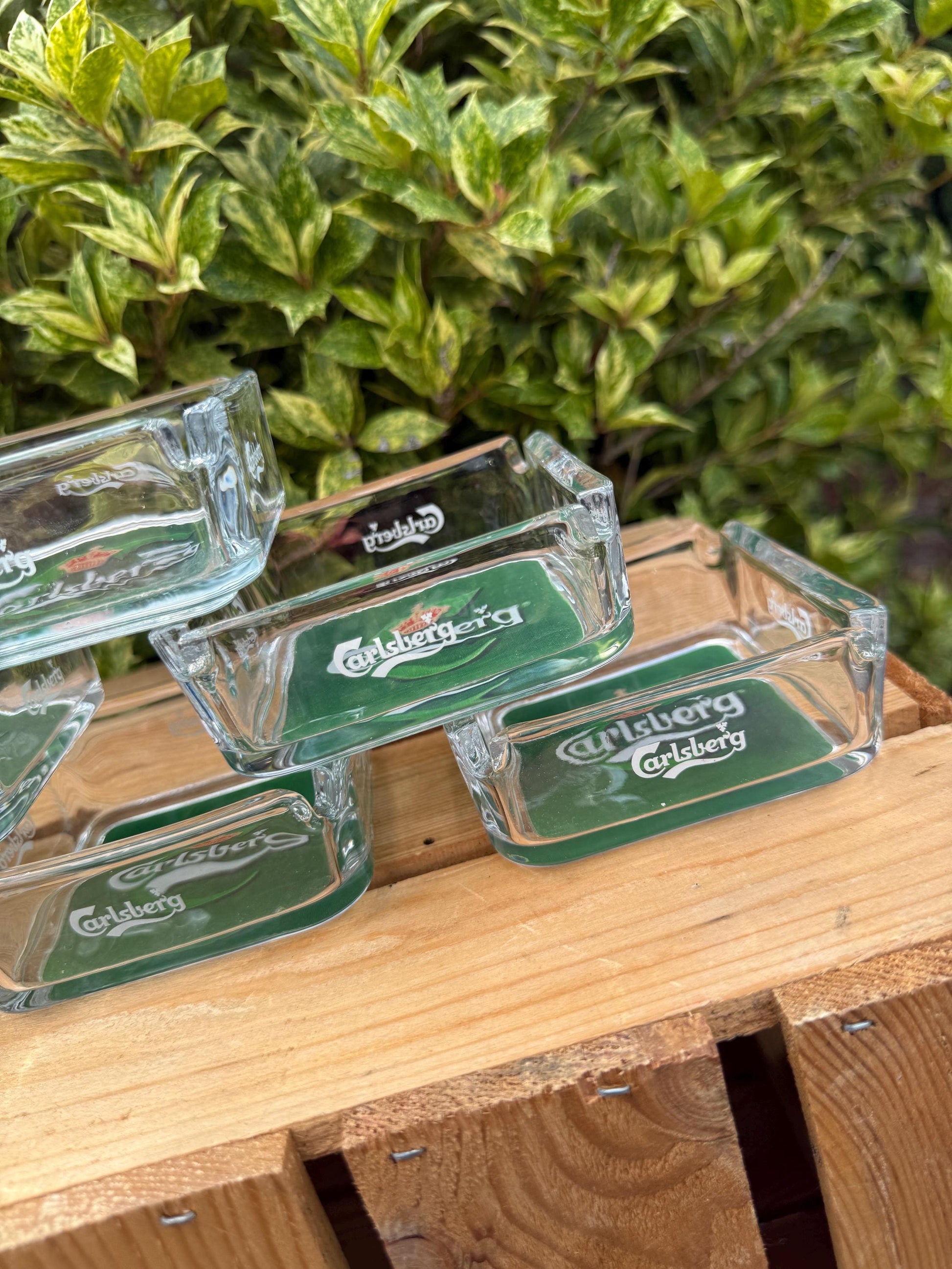 Vintage Carlsberg Glass Ashtray – Square Beer Advertising Collectible.