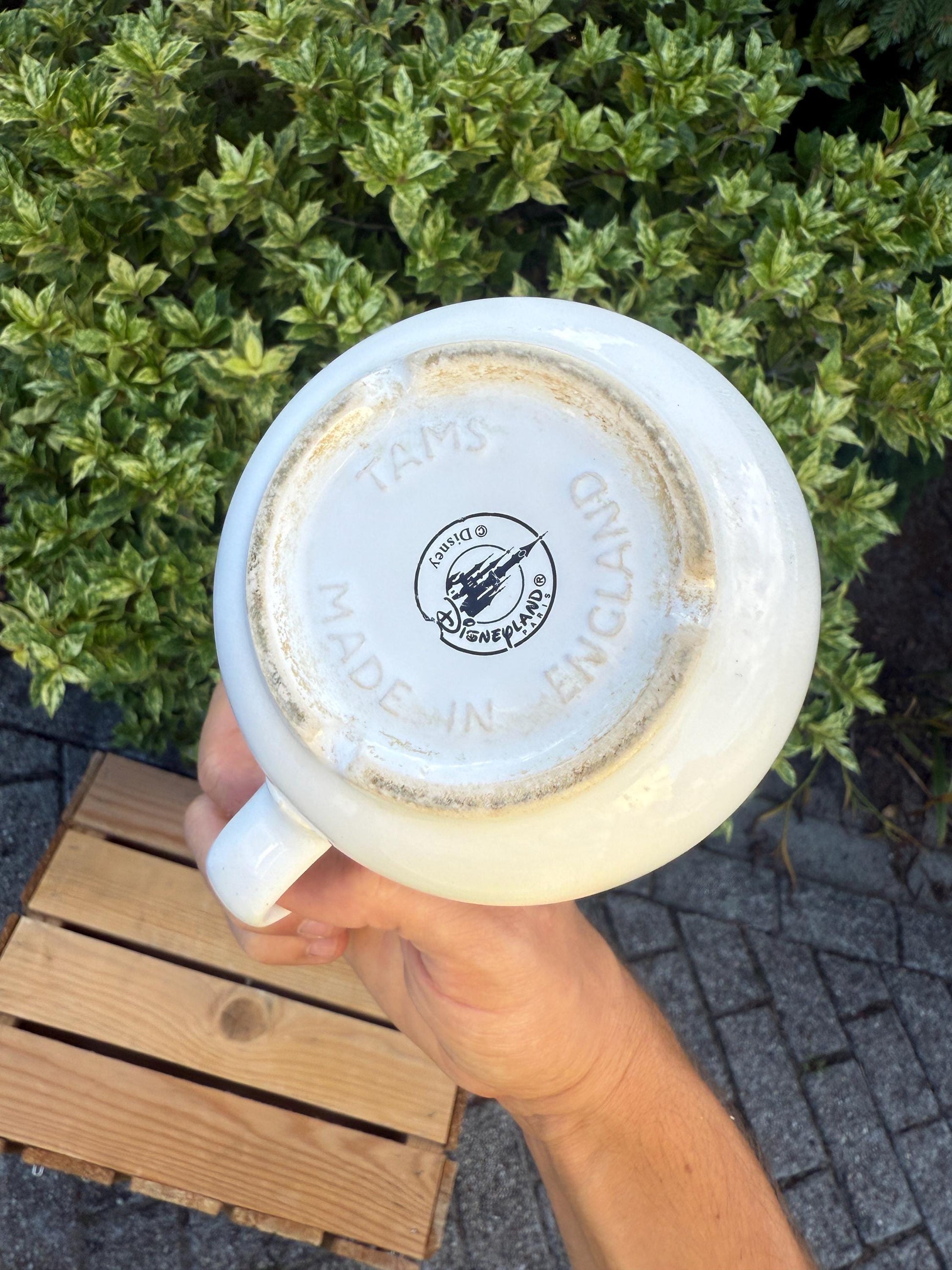 This vintage mug features classic Mickey Mouse artwork and was produced by Tams for Disneyland Paris. A collectible retro coffee cup and theme park souvenir, perfect for display or everyday use.