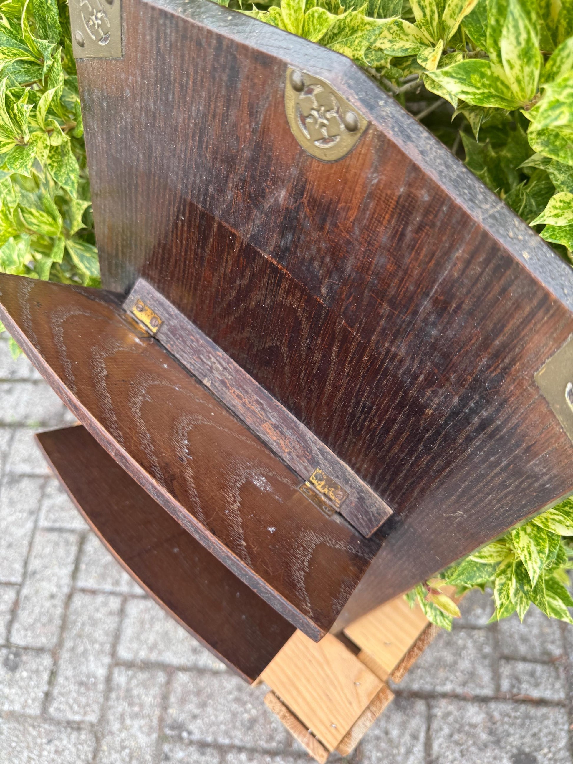 This vintage rack is made of wood with brass metal detail accents and was originally used for dagbladen and tijdschriften. A functional and collectible Dutch magazine or newspaper holder.