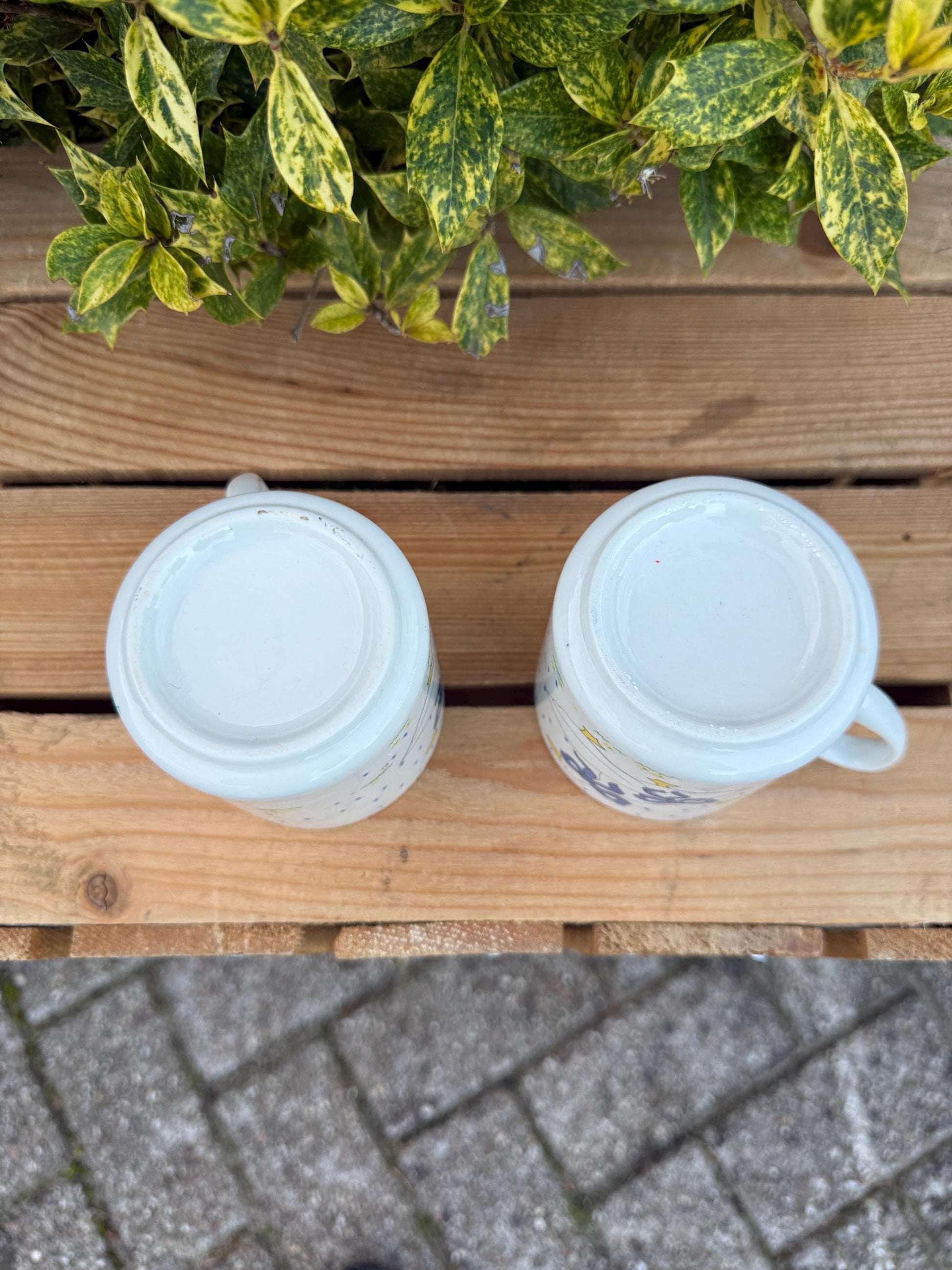 Both mugs are made from ceramic and have a cheerful look typical for classic eighties kitchenware. A fun set for daily use or display.