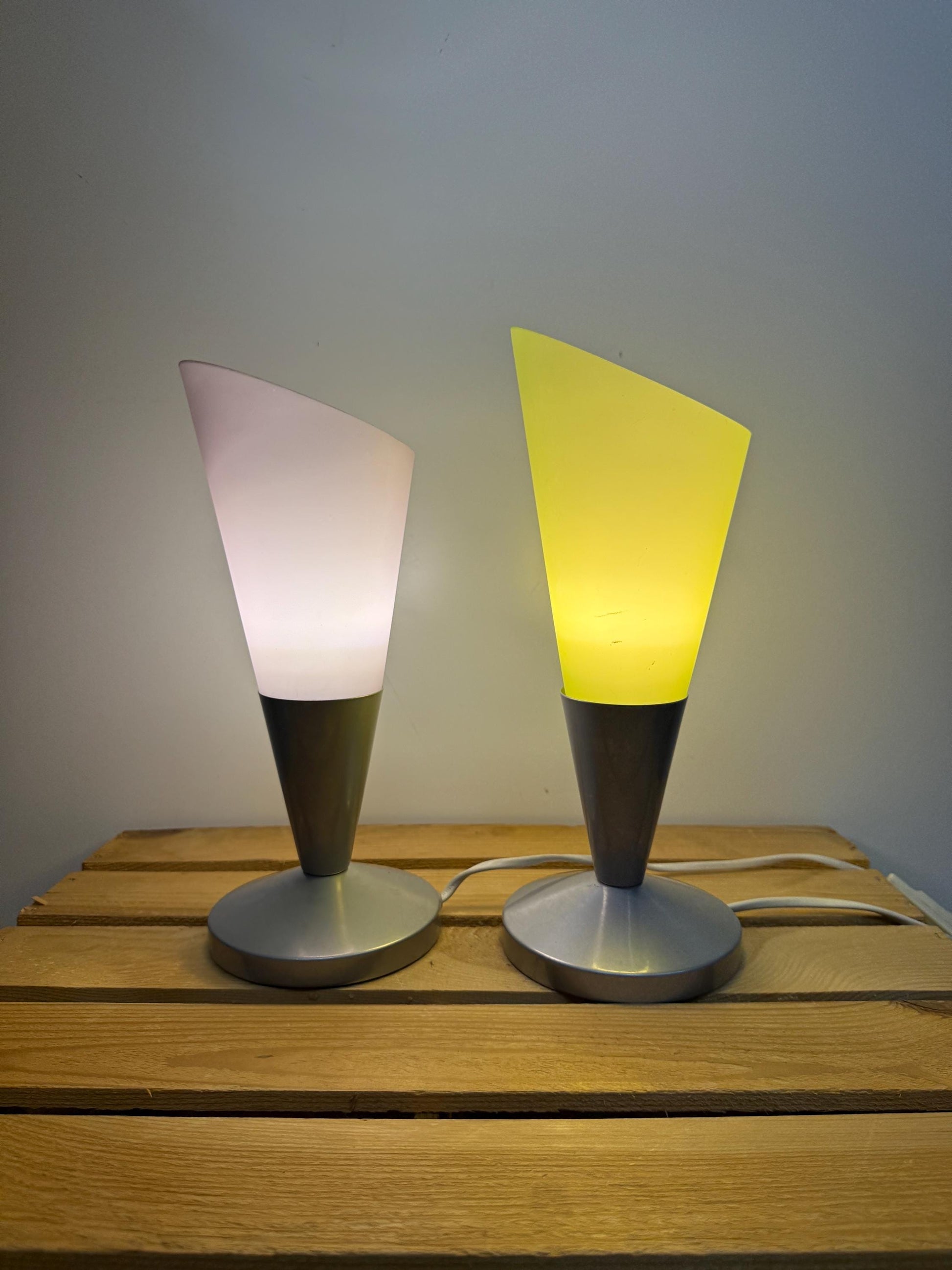 Vintage Ikea Table Lamp, Kryolit Glass Shade, Postmodern Design, Ice Cream Cone Shape, 1990s Lighting
