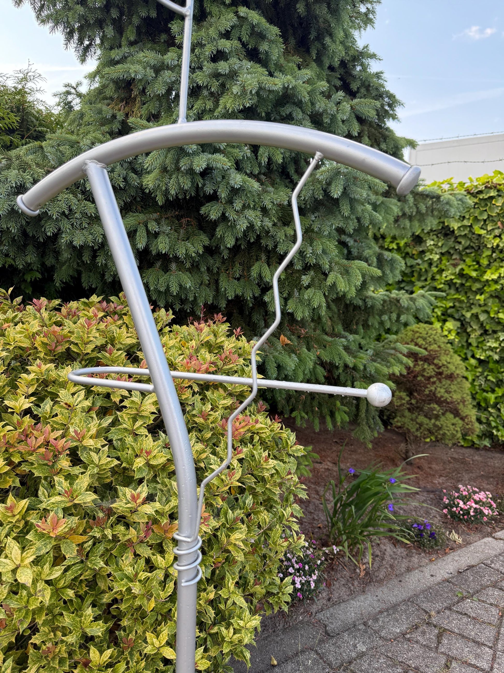 Vintage Memphis Style Dressboy, 1990s Postmodern Clothes Stand, Grey Metal Valet, Fido Dido Design, Sculptural Clothing Organizer