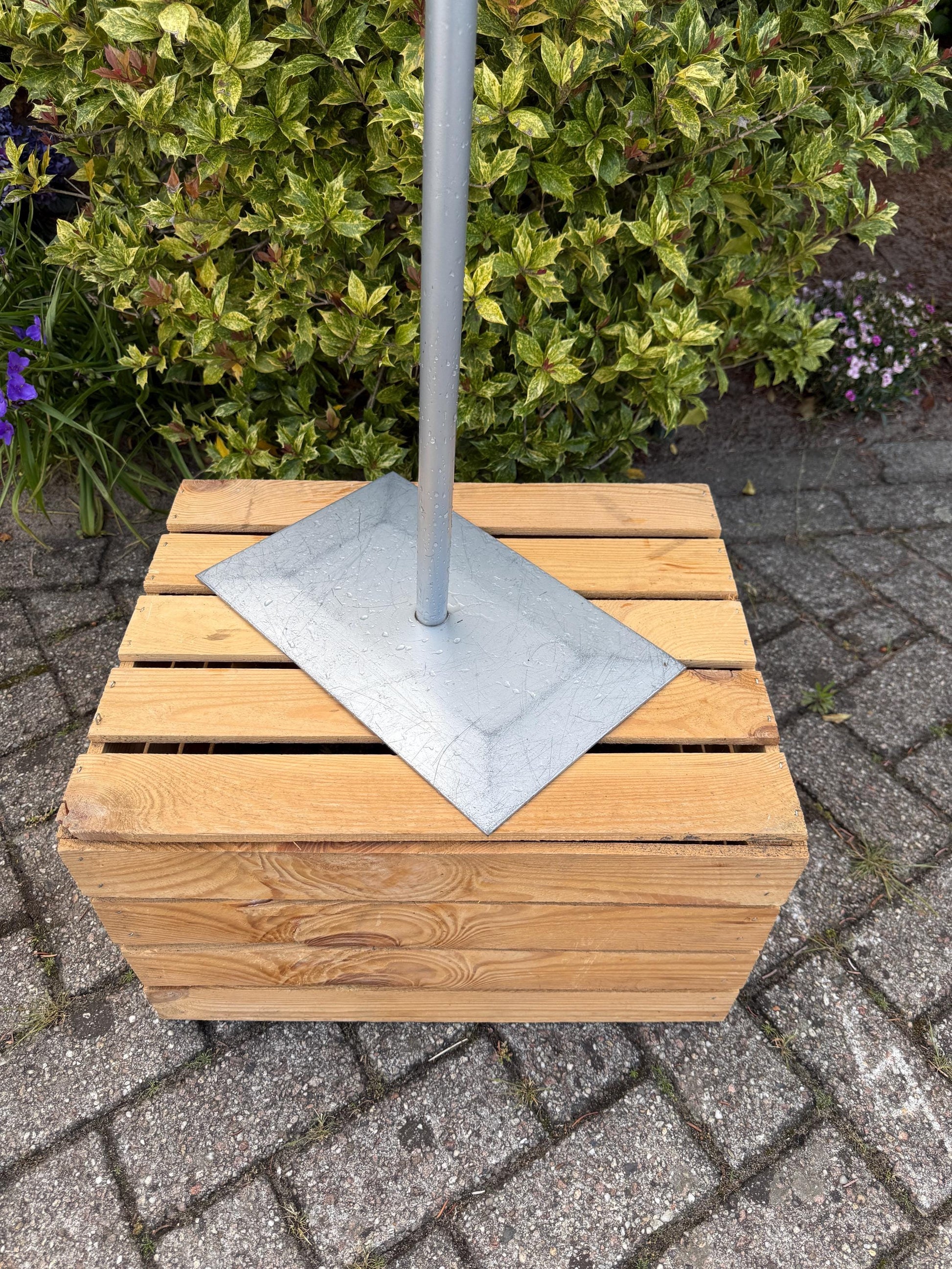 Made from grey-coated metal with wooden knobs used as the eyes and at the joints.