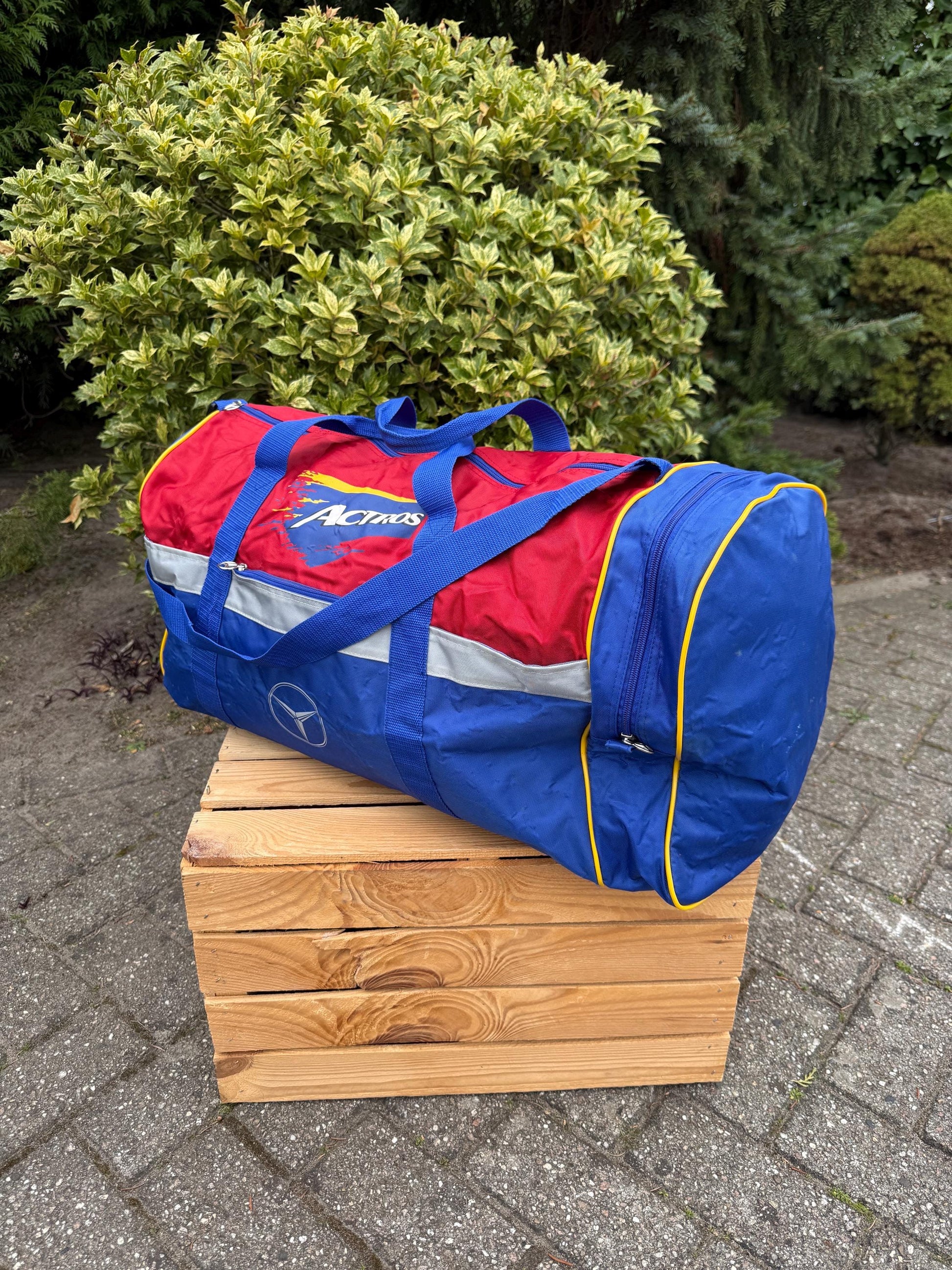 Vintage Mercedes-Benz Actros Bag, 1990s Duffel, Red Blue Yellow Gym Bag, Rare Collectible, Trucking Gift, Racing Travel Holdall
