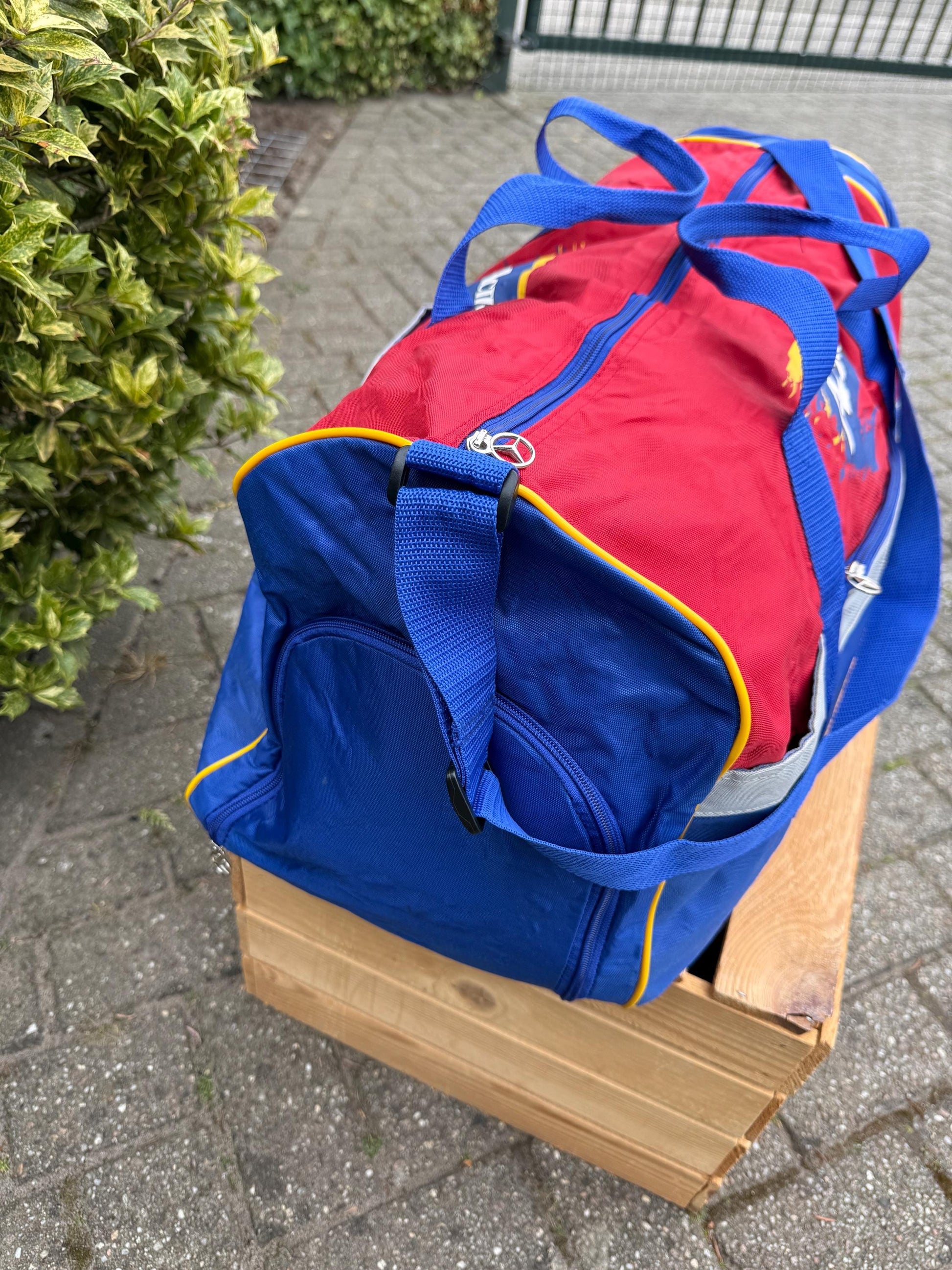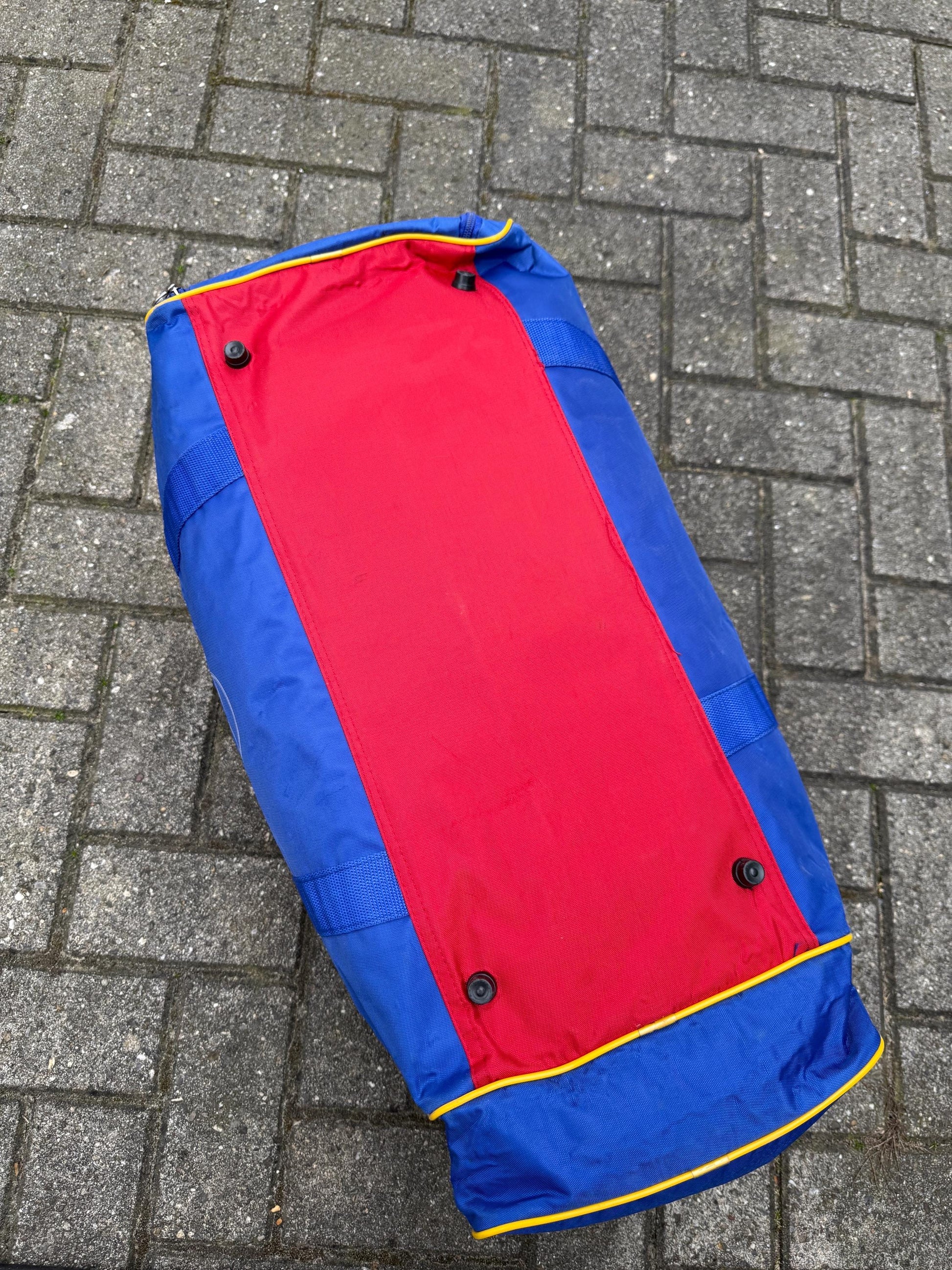 Vintage Mercedes-Benz Actros Duffel Bag – 1990s Red Blue Yellow Travel Holdall