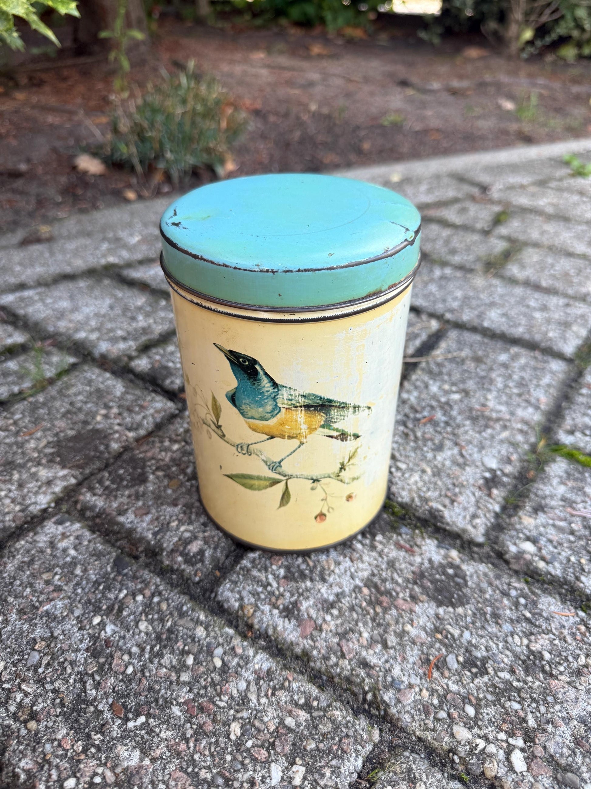 Each tin has its own design, color, and print, ranging from Dutch kitchen storage to collectible advertising packaging. These tins make great display items for shelves, cafés, or workshops.