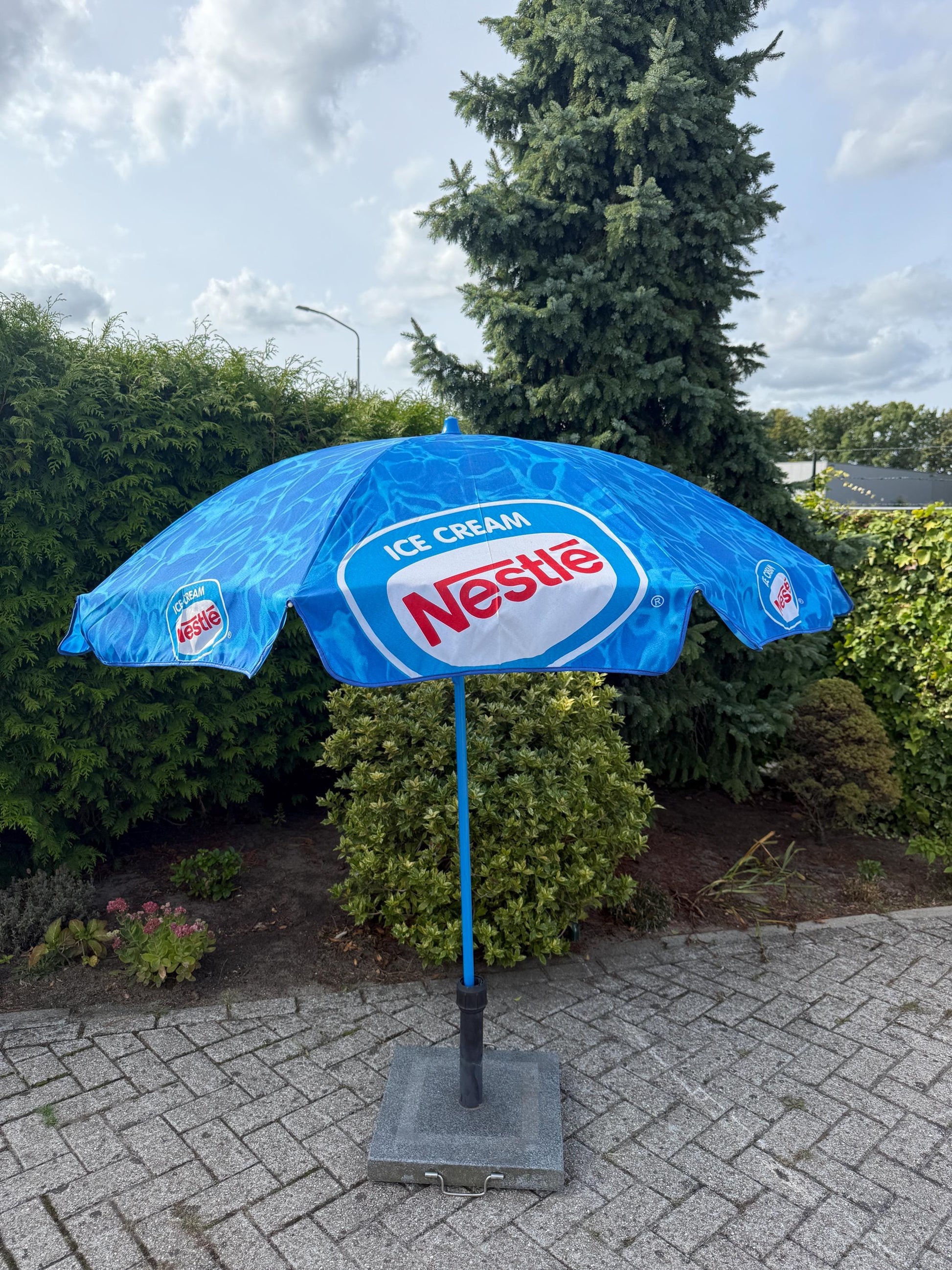 Vintage Nestlé Ice Cream Umbrella, Blue Advertising Parasol, Retro Patio Umbrella, Terrace Umbrella, Beach Umbrella 1990s