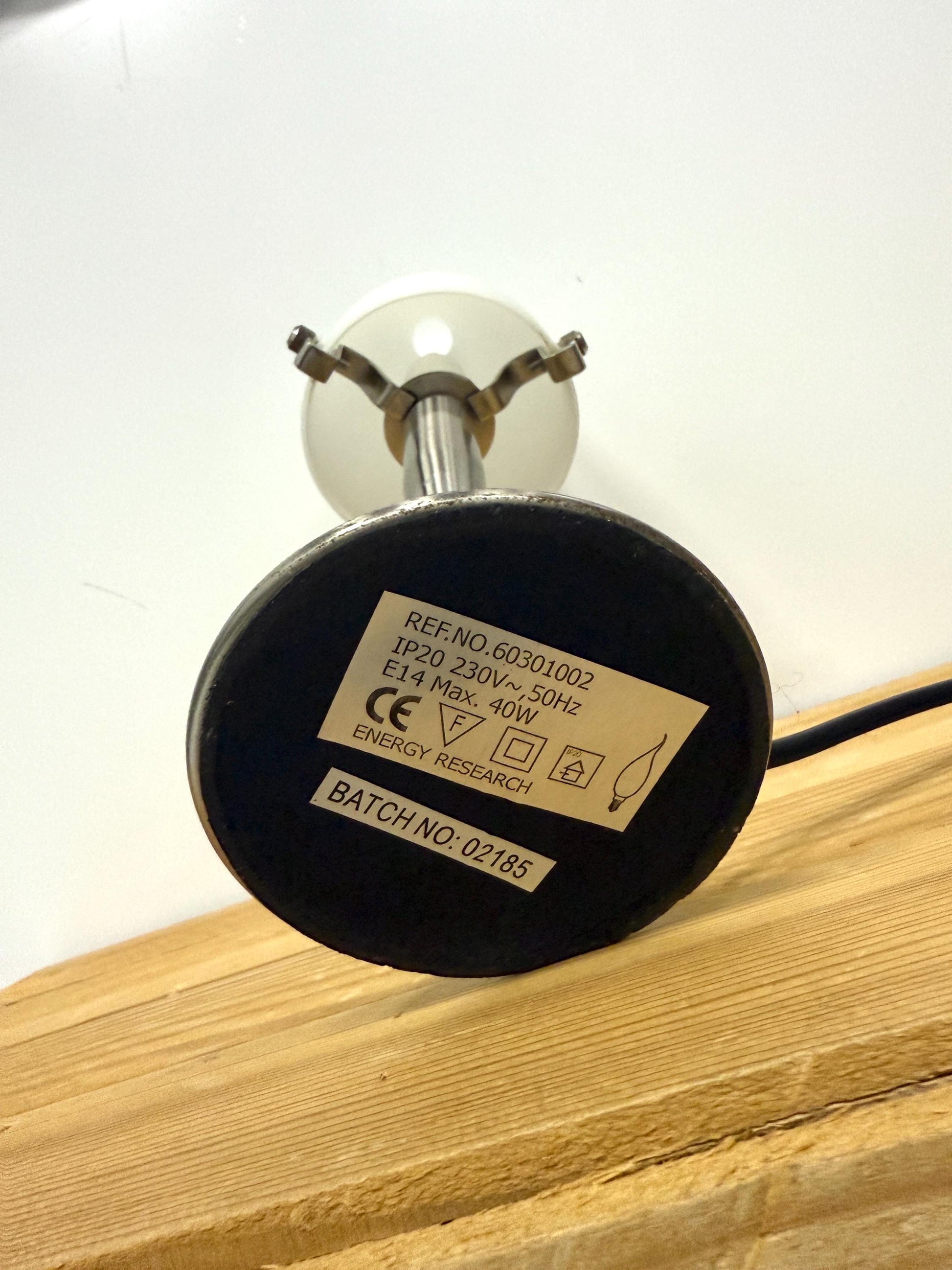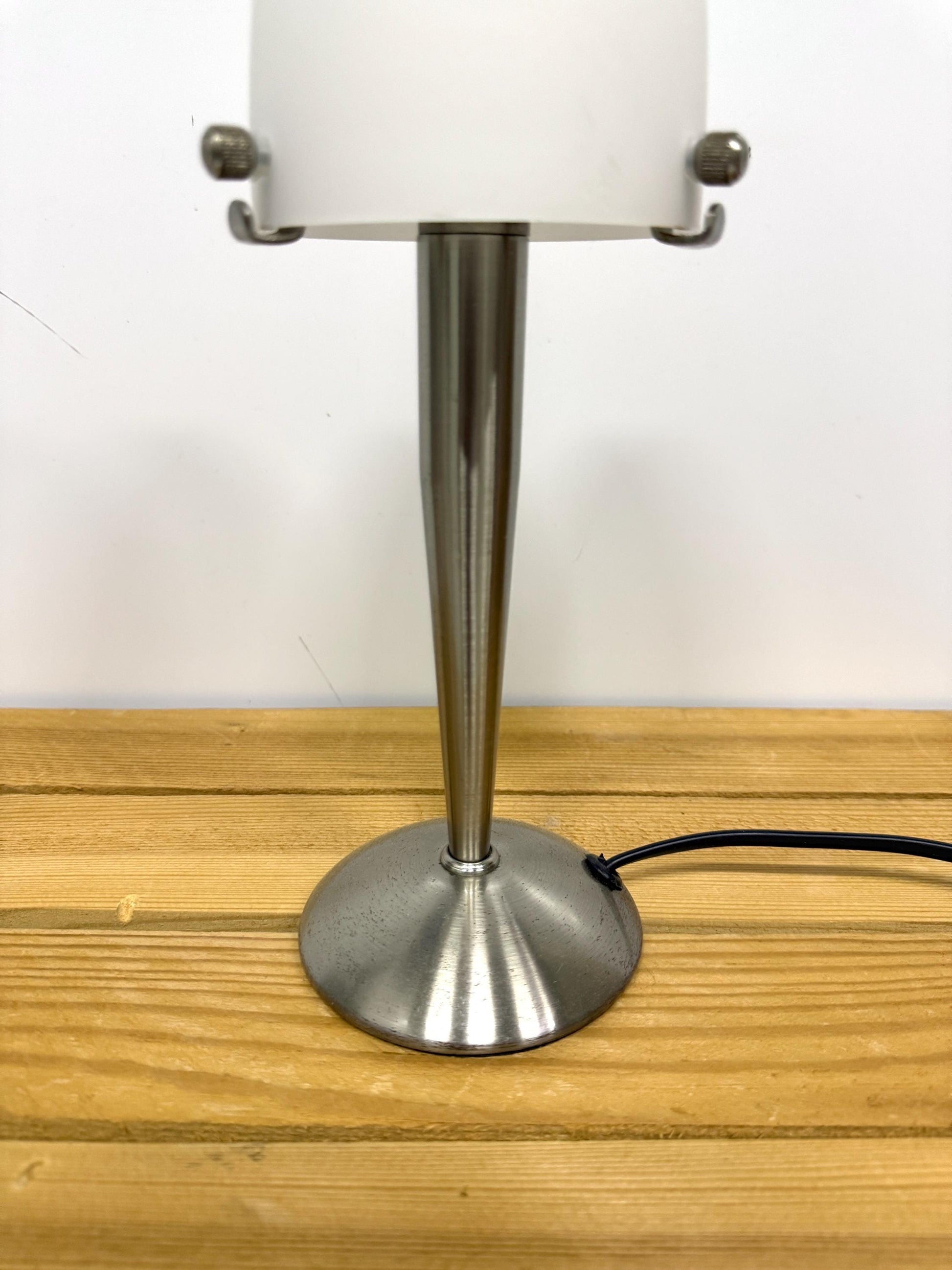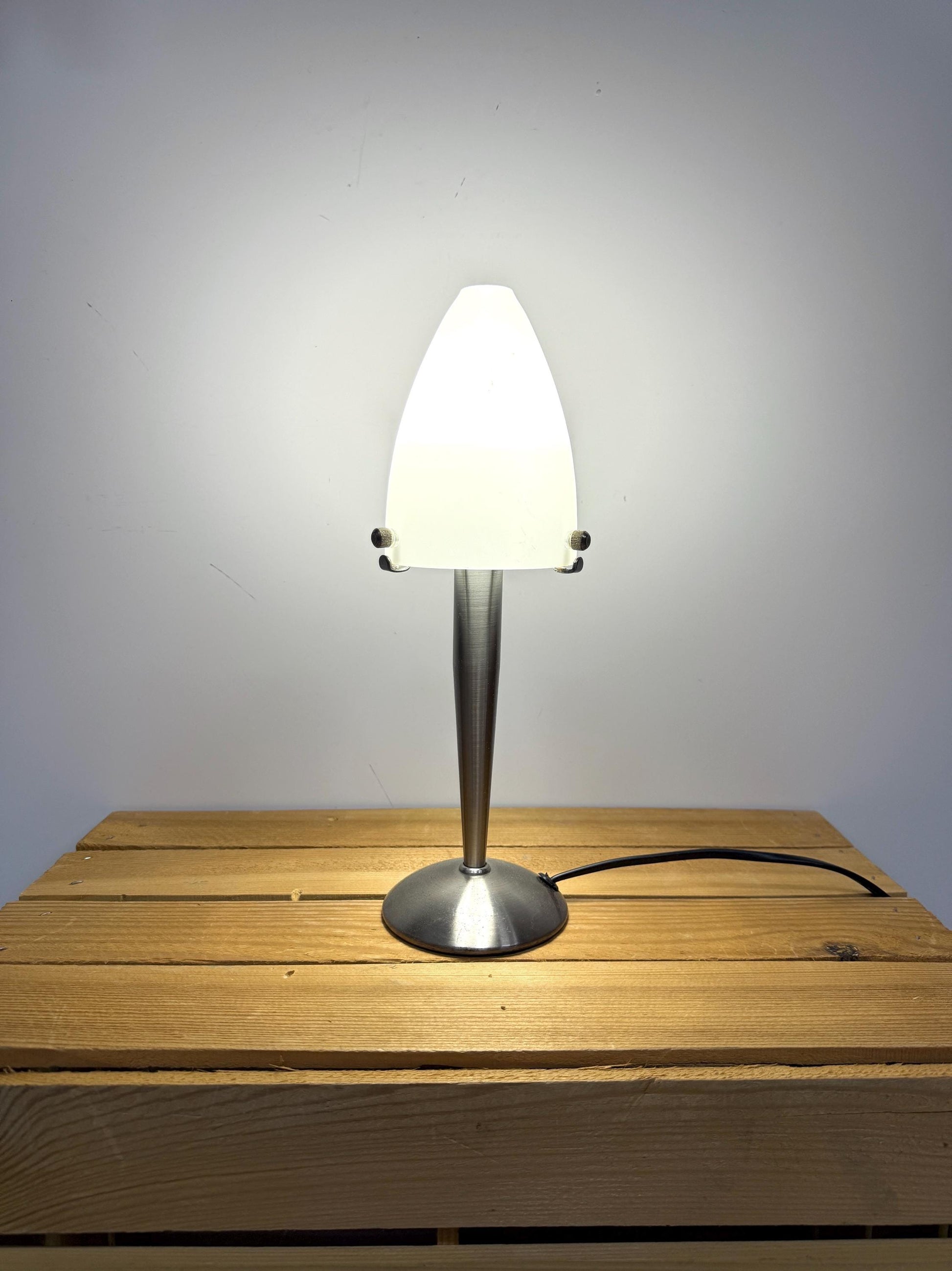 Vintage Table Lamp, Space Age Design, Glass and Chrome, Nineties Desk Lamp, Nightstand Light, White Sphere Minimalistic.