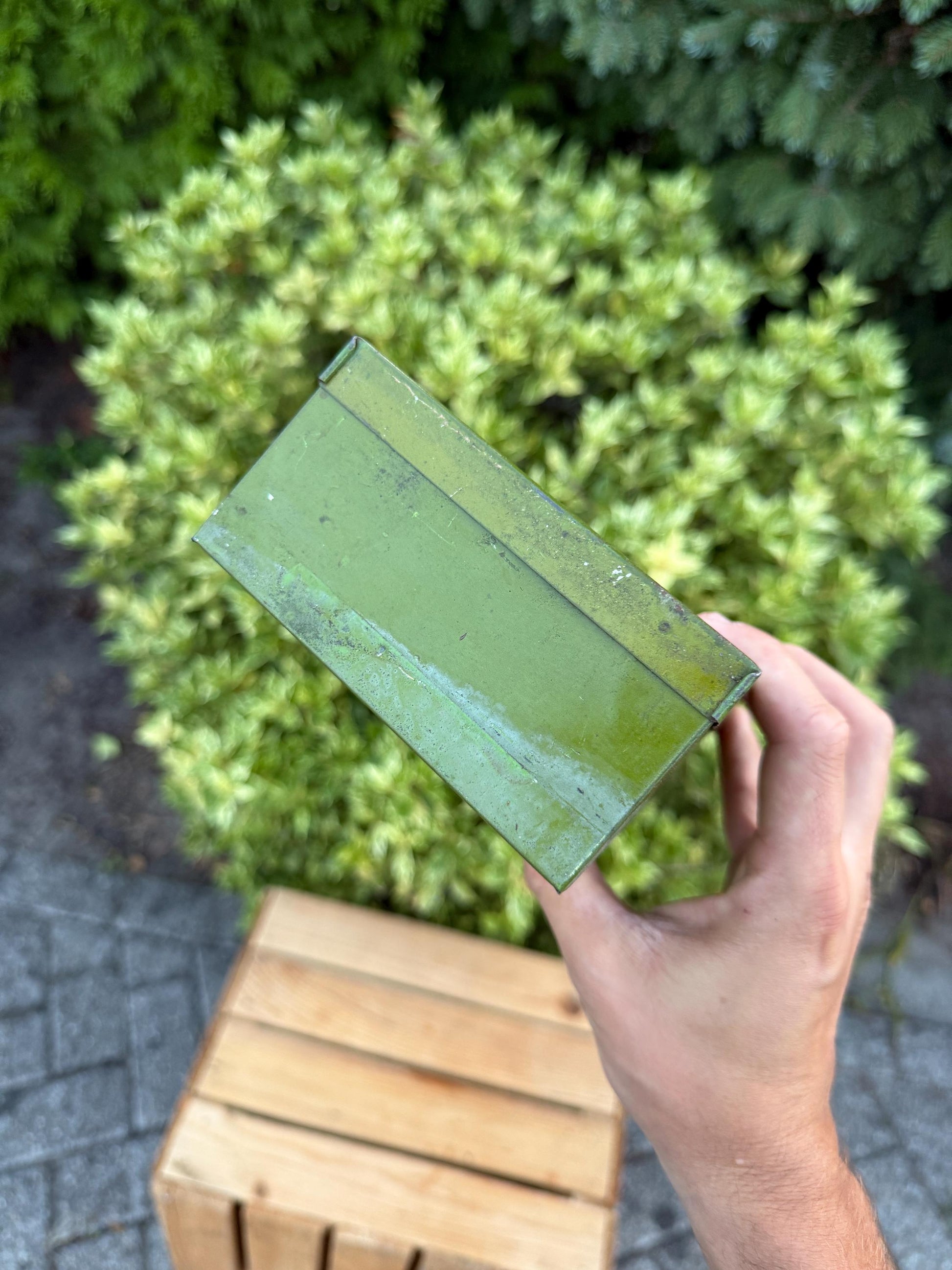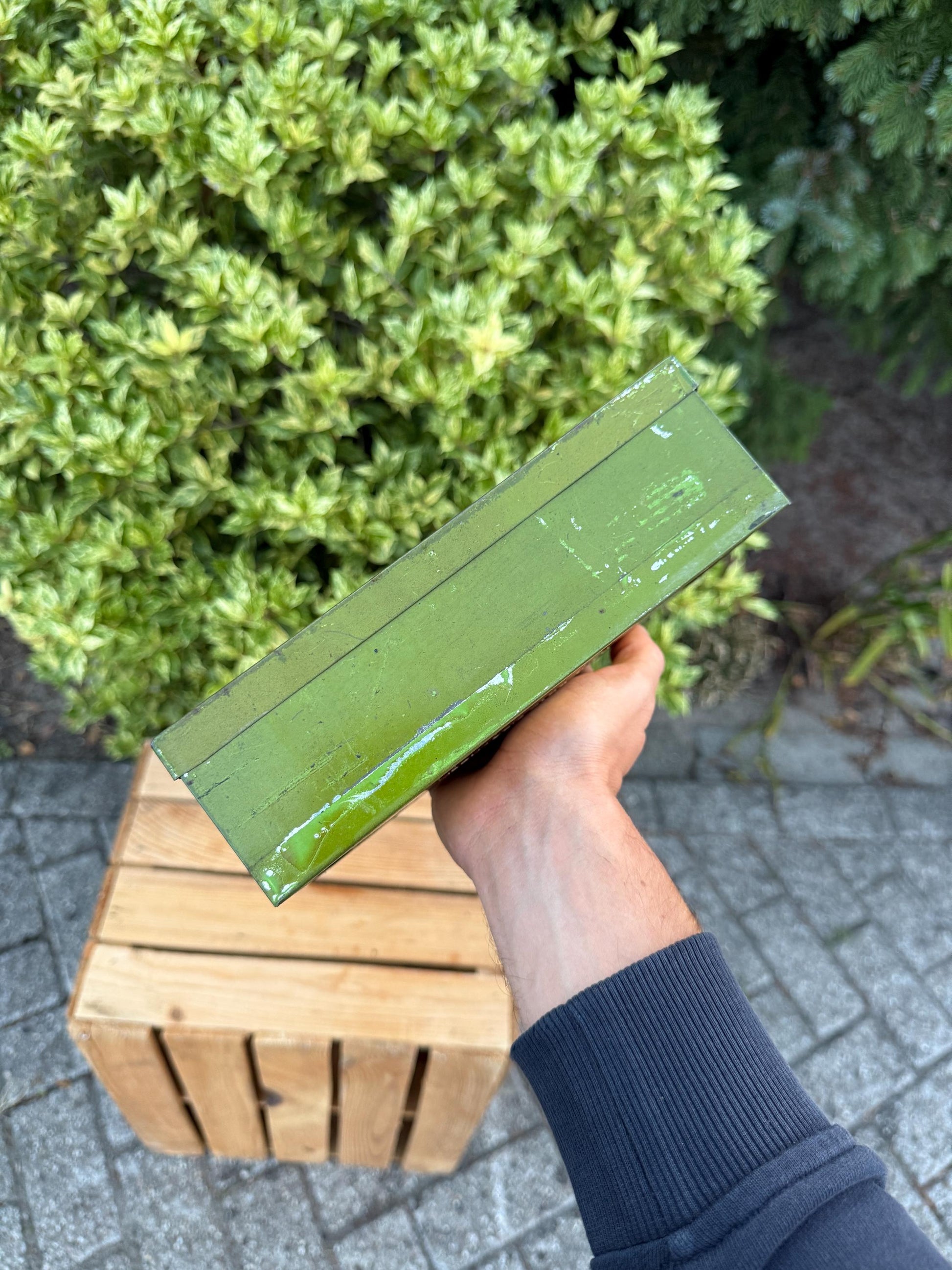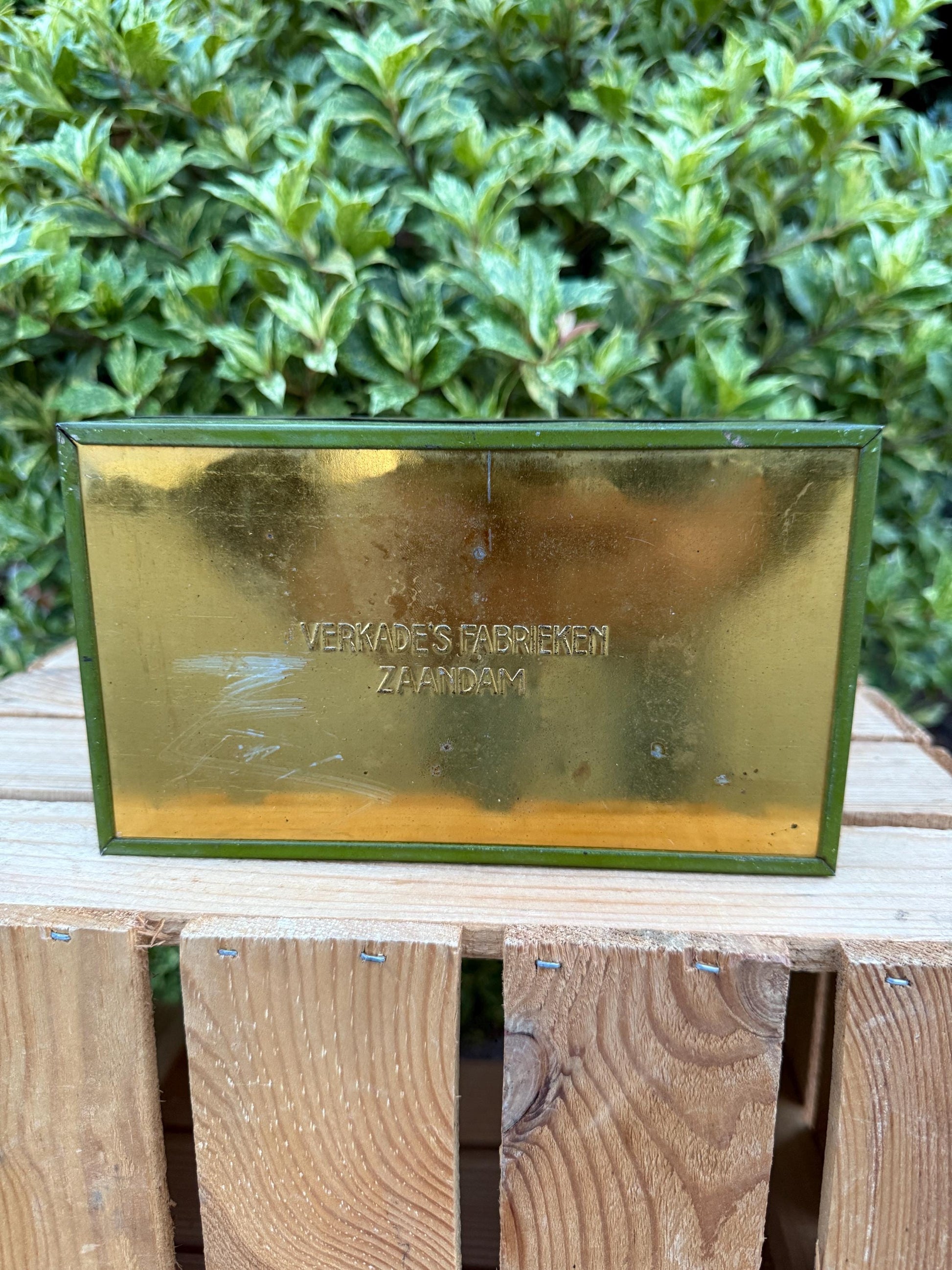 This vintage Verkade tin features an Art Deco style design with the text “Nu Elck Syn Sin.” Originally used as a biscuits box, it’s a Dutch advertising collectible and decorative piece.