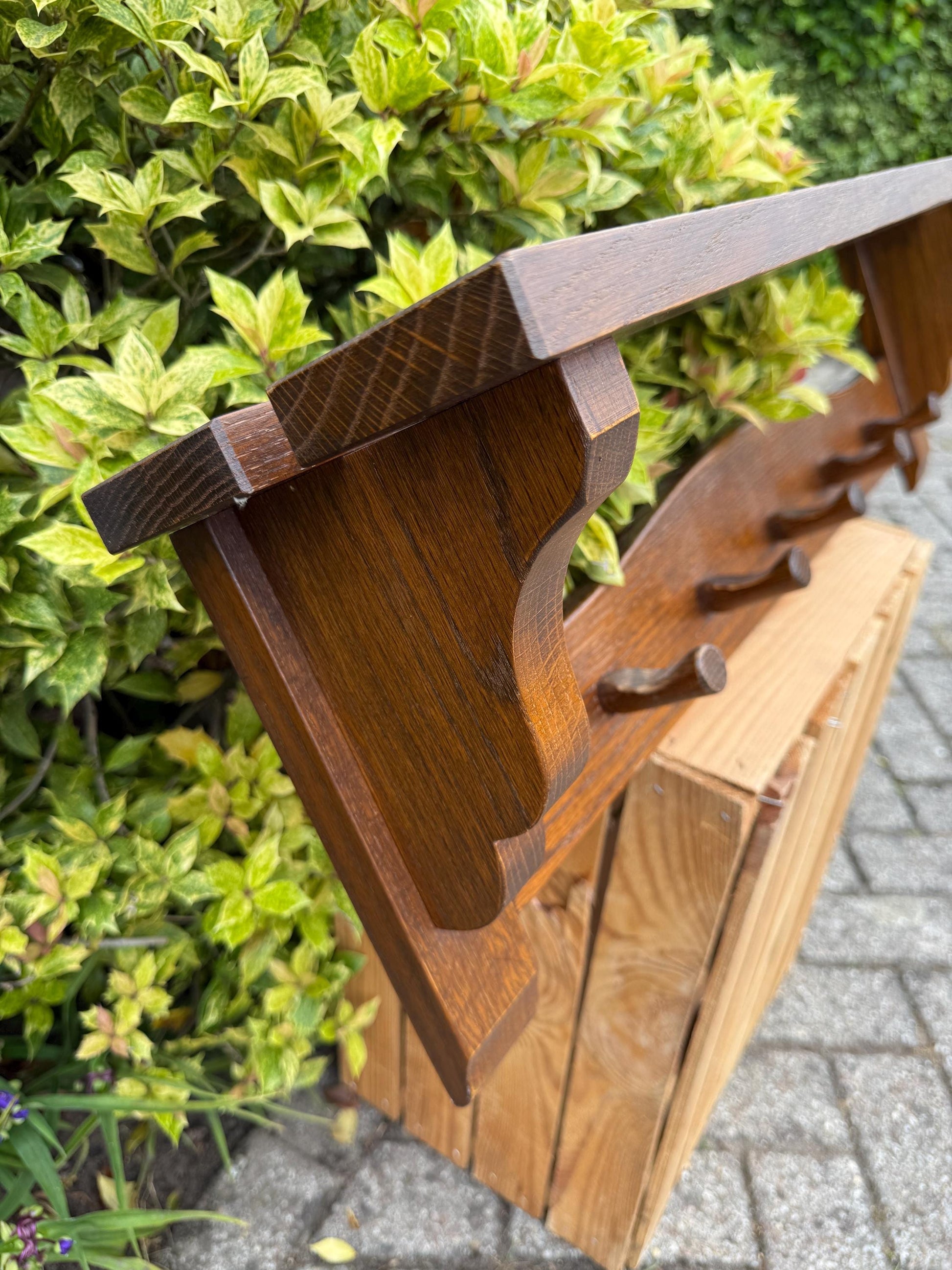 Vintage Wooden Coat Rack with Shelf, Farmhouse Hallway Organizer, Rustic Wall Hook Rail, Country Style Entryway Storage, Solid Oak Hanger