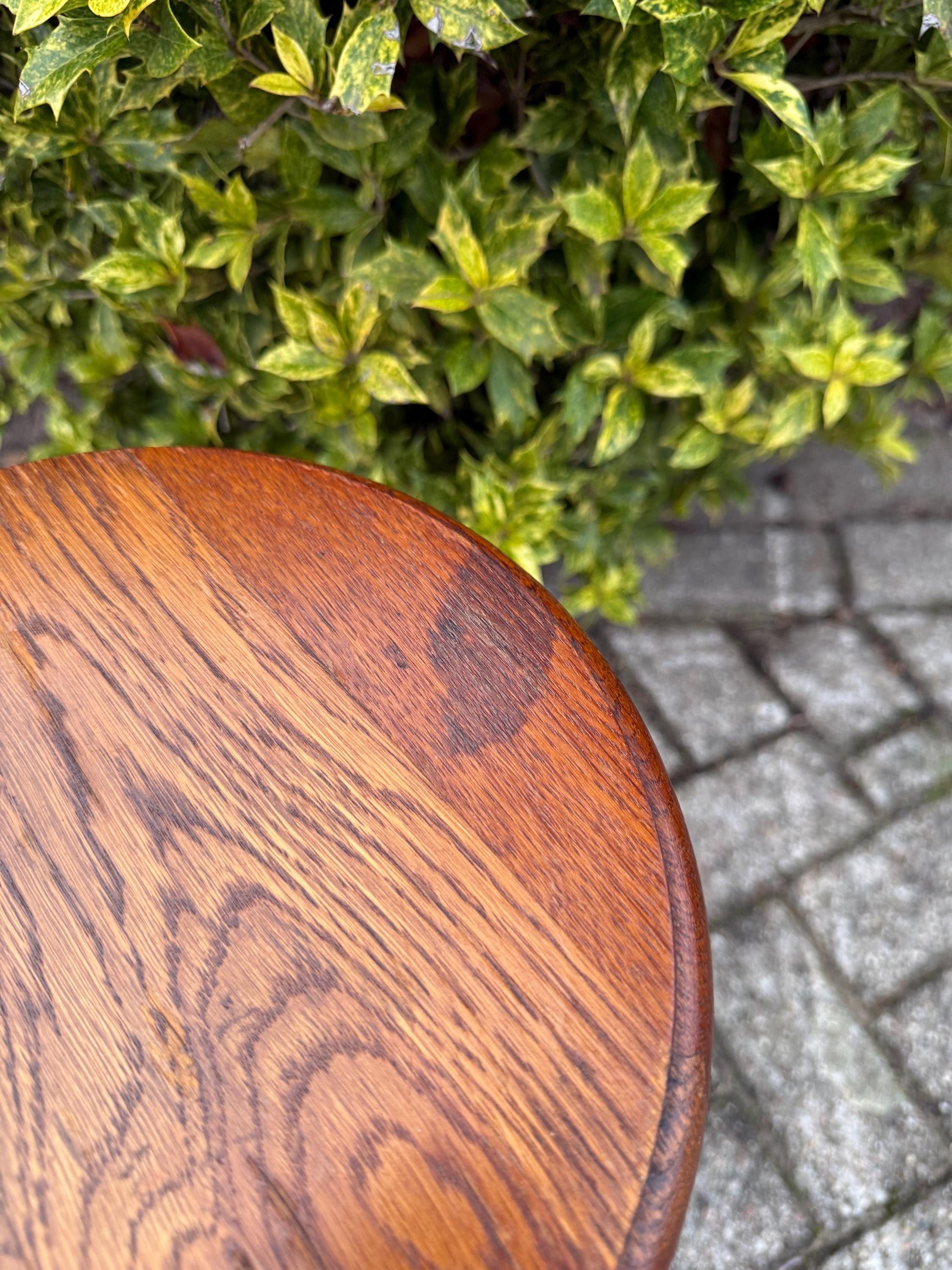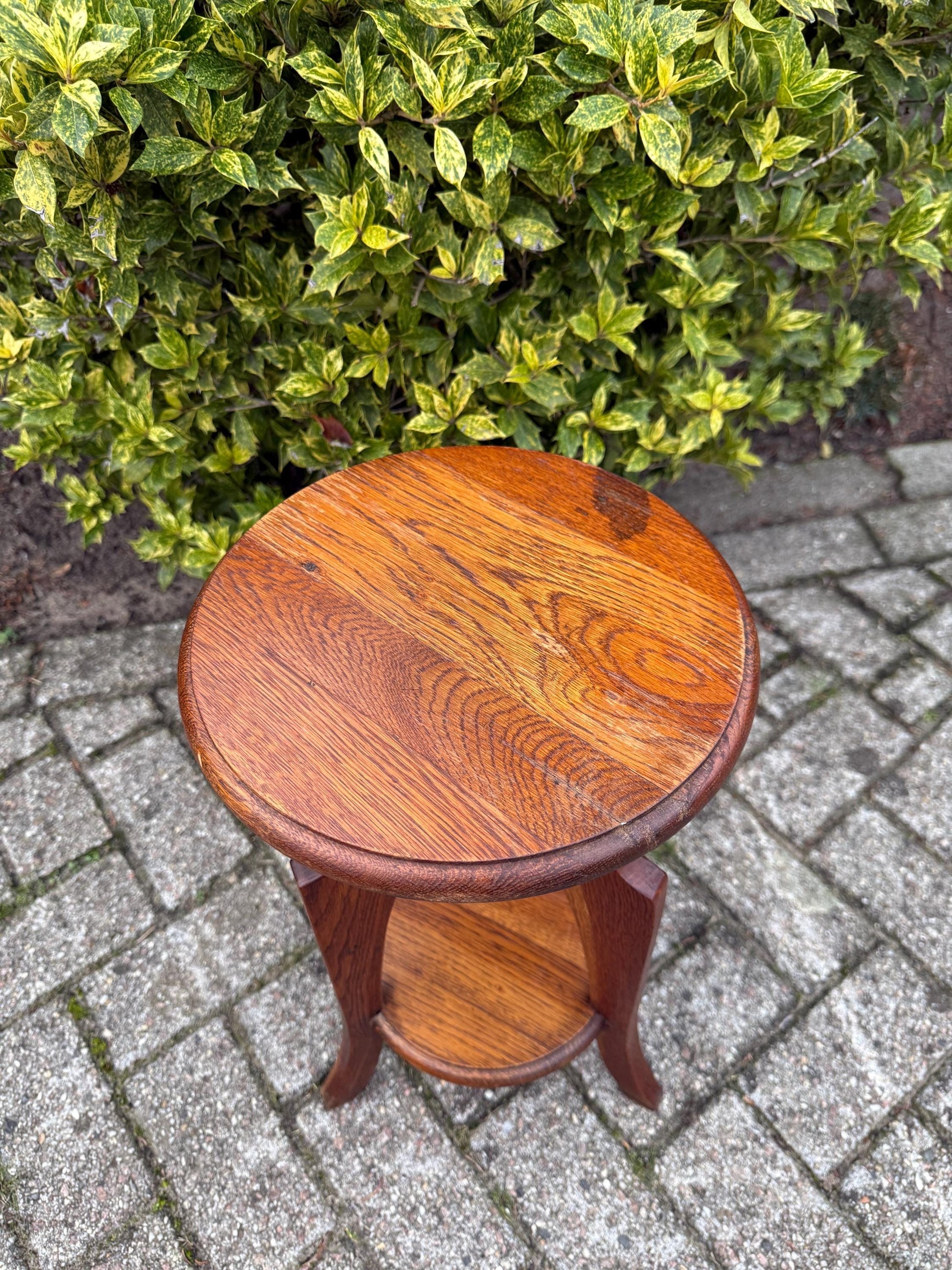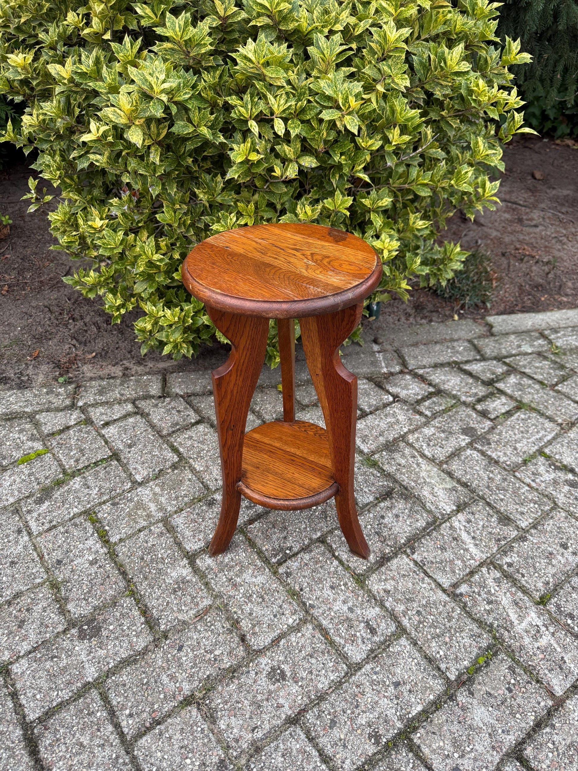 Vintage Wooden Plant Table – Short Dutch Art Deco Style Pedestal