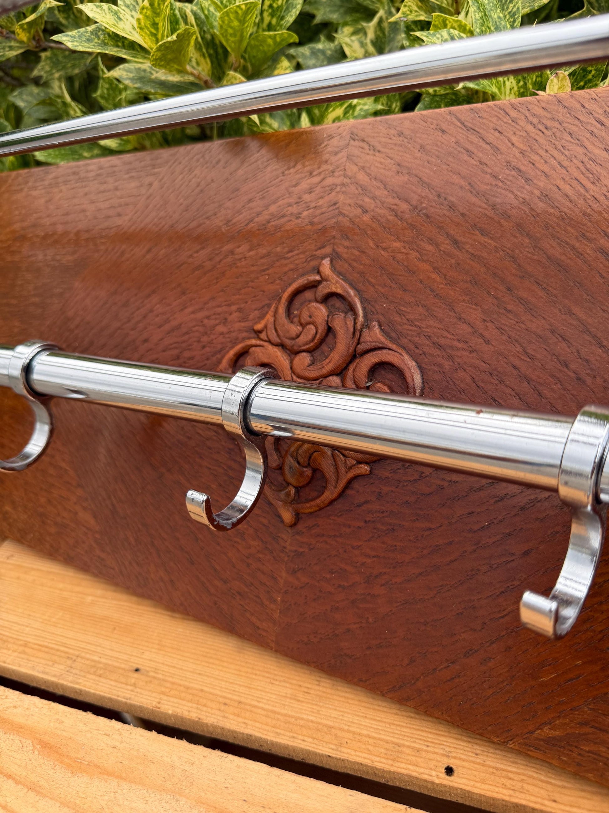 A versatile piece that works brilliantly as a mid-century hallway organizer, rustic farmhouse entryway hanger, or retro wall-mounted storage solution for outerwear, bags, or accessories.