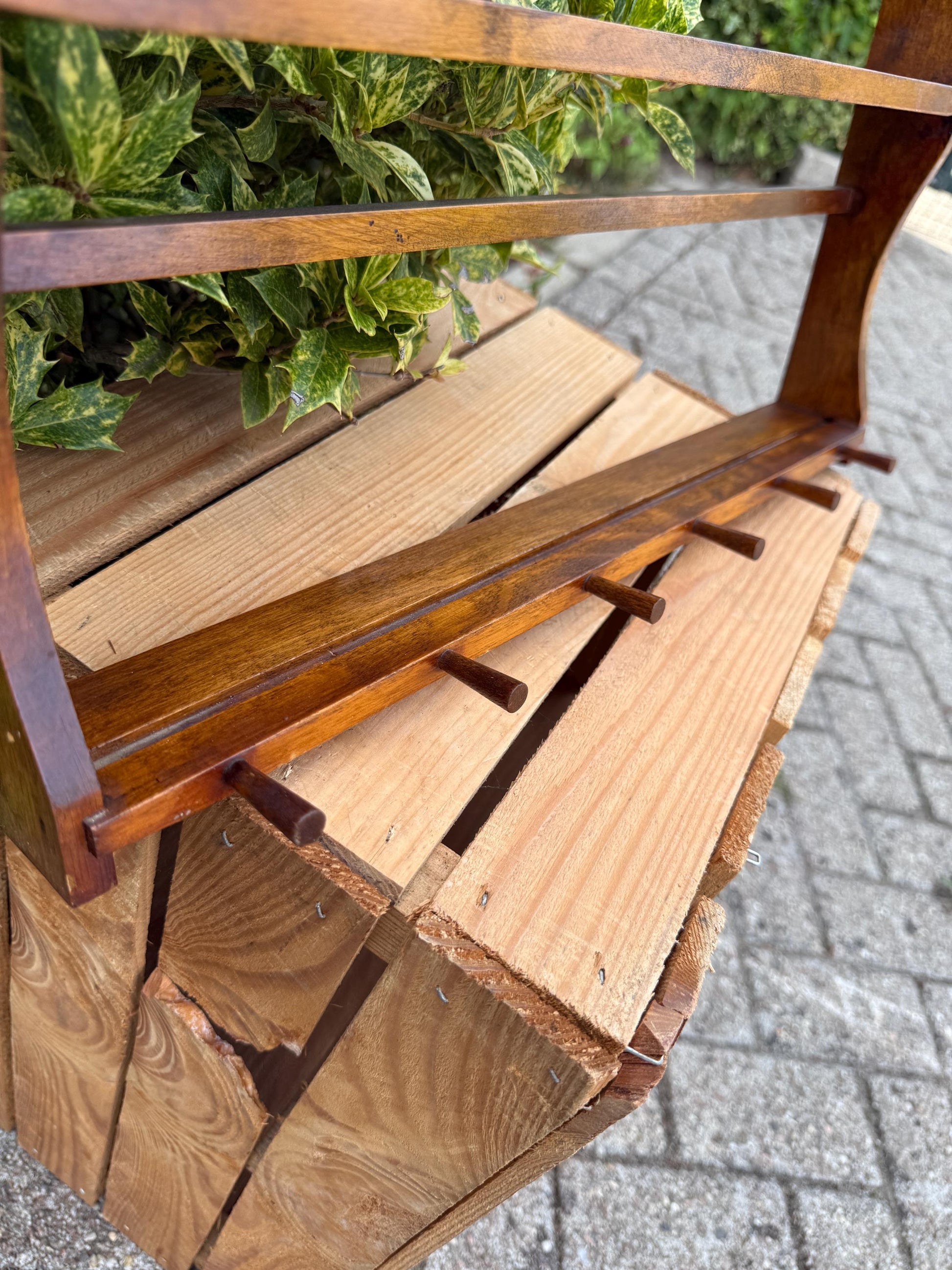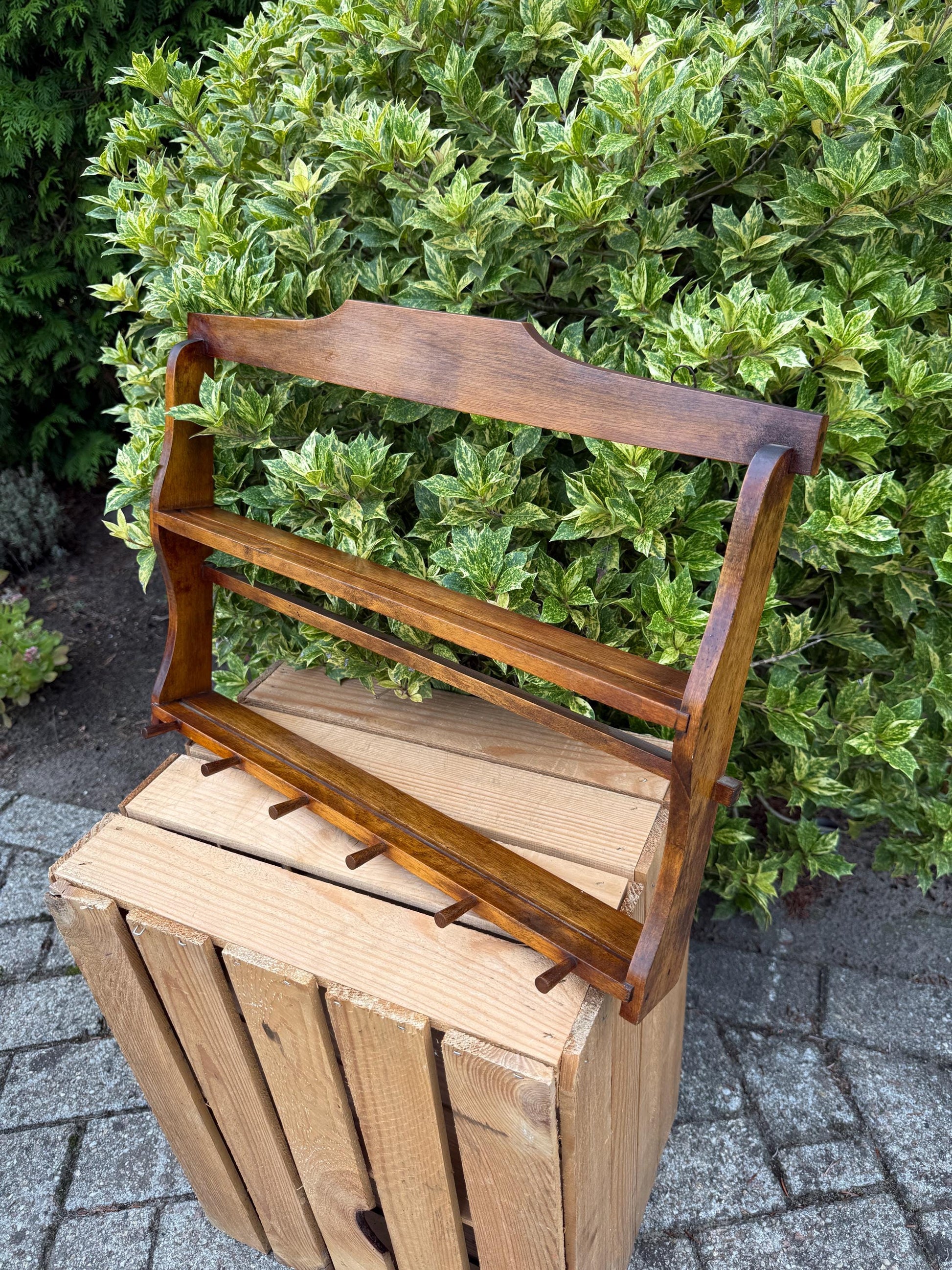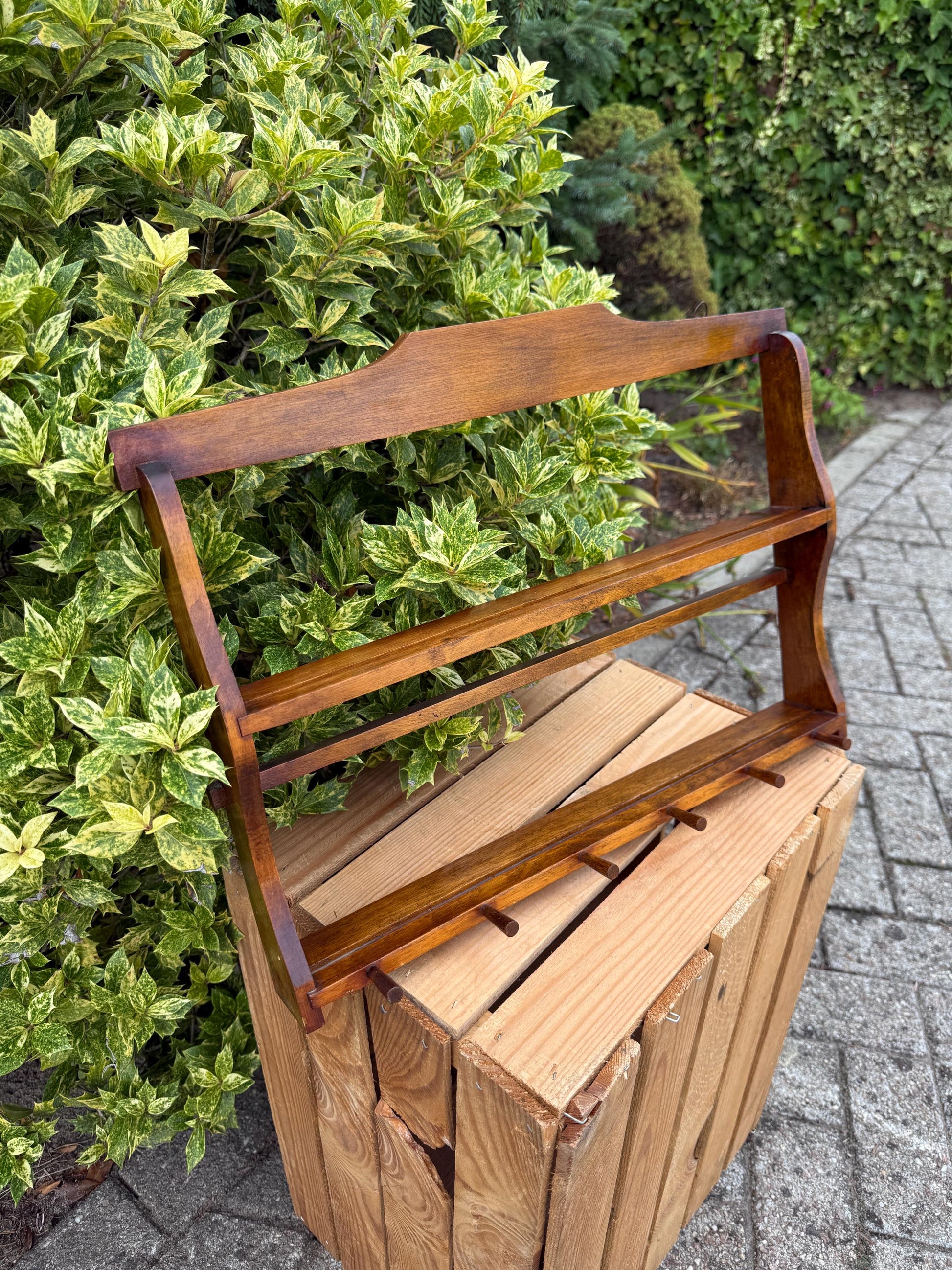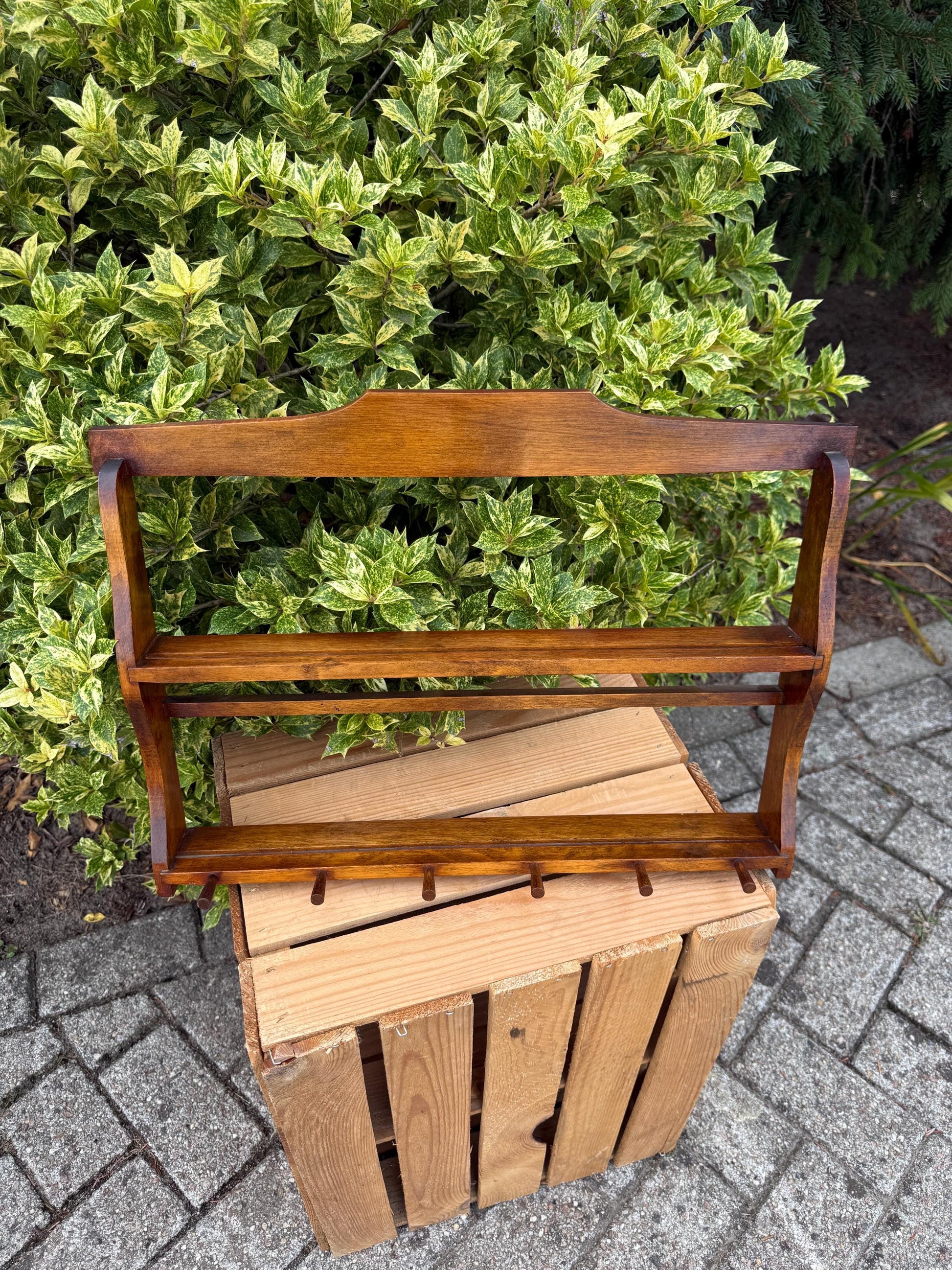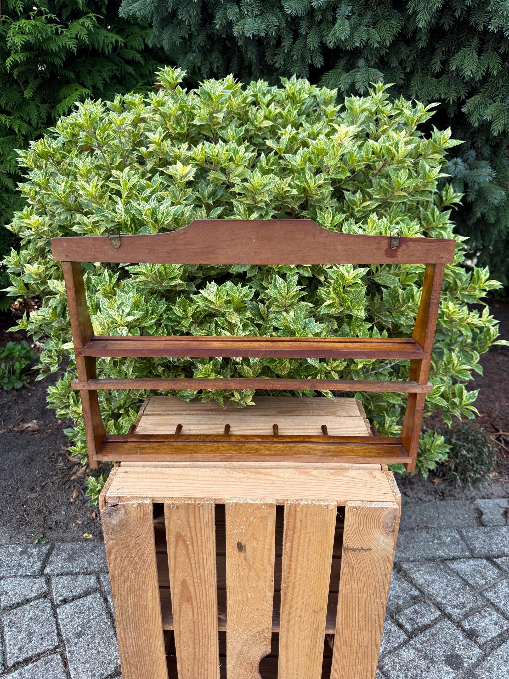 Vintage Wooden Wall Rack with Pegs – Spice Shelf, Mug and Plate Holder
